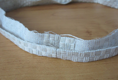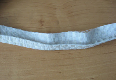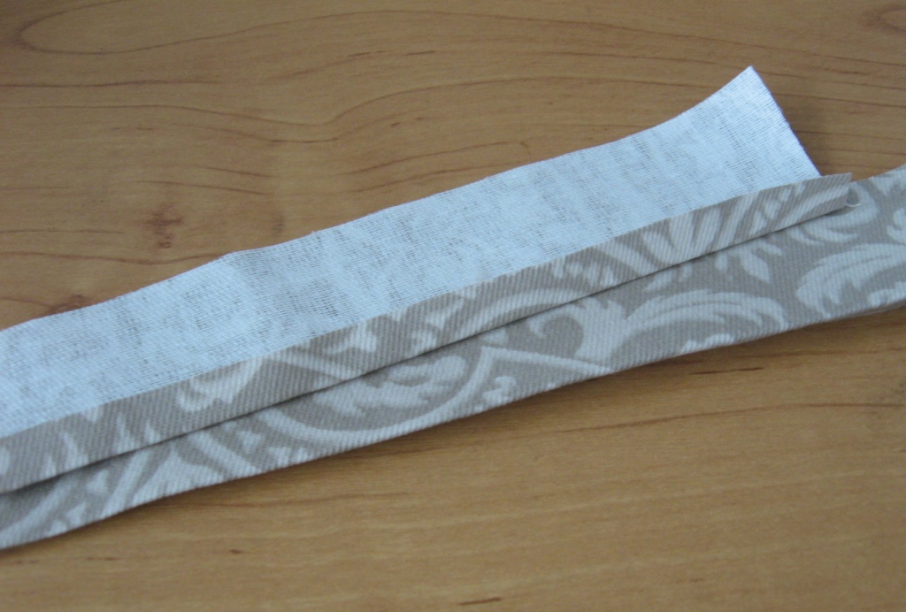 Заготавливаем окантовку. Заутюживаем ее пополам, затем еще один край пополам. Если наша бейка 4 см, то сначала заутюживаем пополам = 2 см, и еще один срез пополам = 1 см.