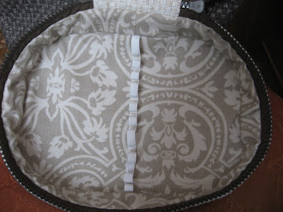 На подкладку крышки нашиваем резинку. Количество отделений зависит от вашего желания. Пришиваем тройной строчкой.