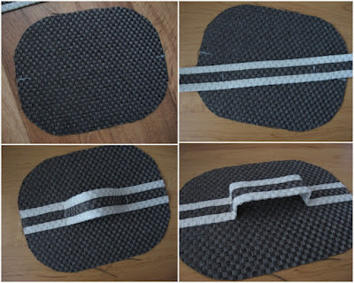 Донышко проклеиваем дублерином и пропареным синтепоном. Пришиваем донышко. Намечаем контрольные точки на стенке и на донышке. По середине меньшей стороны располагаются боковые швы.