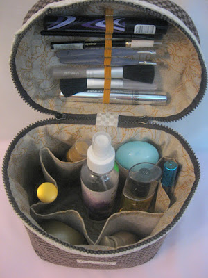 Стенки косметички состоят из двух частей (швы располагаются по бокам). Детали проклеиваем дублерином и пропареным синтепоном.