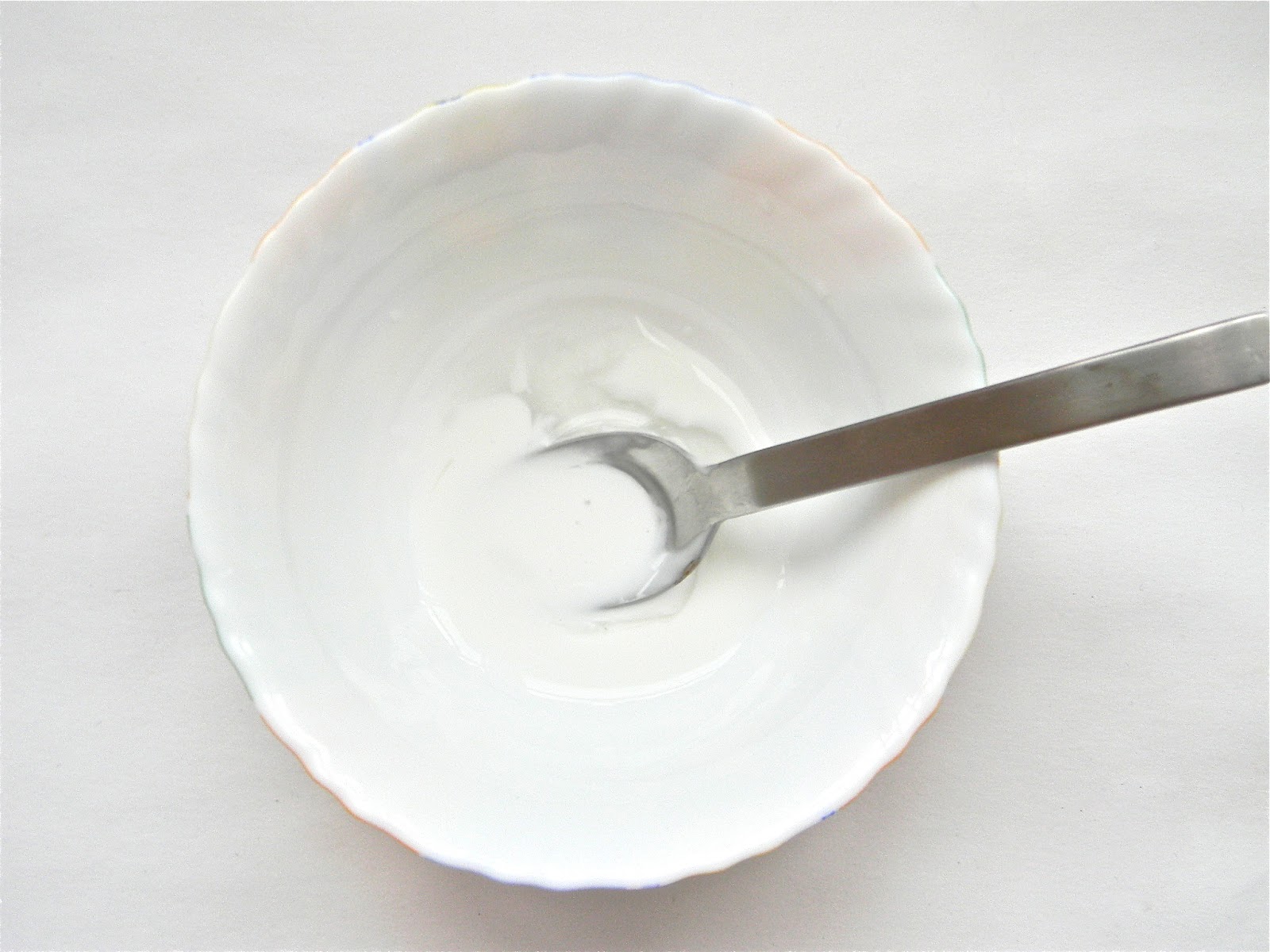 Пока бутылка проветривается, готовим волшебную смесь :-) Наливаем в емкость 3 чайные ложки клея ПВА, 1 чайную ложку воды и каплю жидкости для мытья посуды, размешиваем