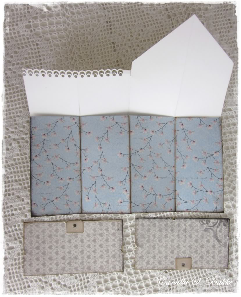 And I also measured up some more patteren paper (30x15 cm) to have inside the card. И я также измеряли что-то более patteren бумаги (30x15 см) две сад внутри карты. It is a bit easier than making four parts (something you also can do, of course). Это немного легче, чем сделать четыре партии (что-то и ты можешь, конечно). I folded the pattern paper like the bazzill, and then fasten it with glue to the bazzill. Я сложил бумаги картины как Bazzill, и просто закрепить его с помощью клея два Bazzill.