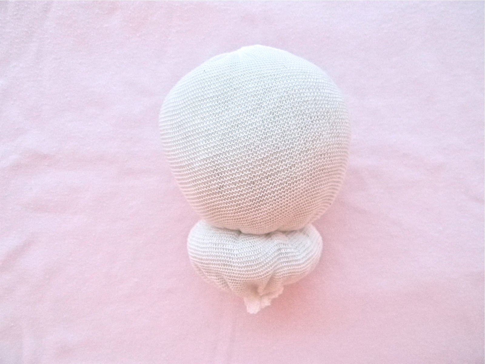 Дальше берем внутренний чехол головы. У нас это бинт Штюльпа, у вас это может быть часть детской колготки или рукава кофточки.