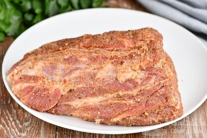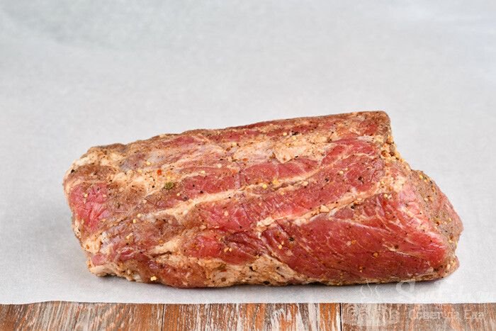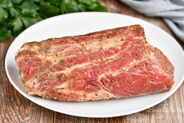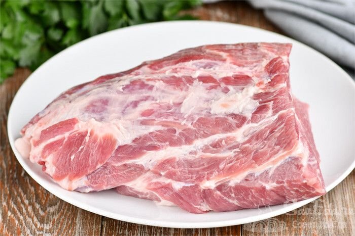 1. Для приготовления можно брать свиной окорок, лопатку или шею, как у меня. Кусок промываем и просушиваем бумажными полотенцами.