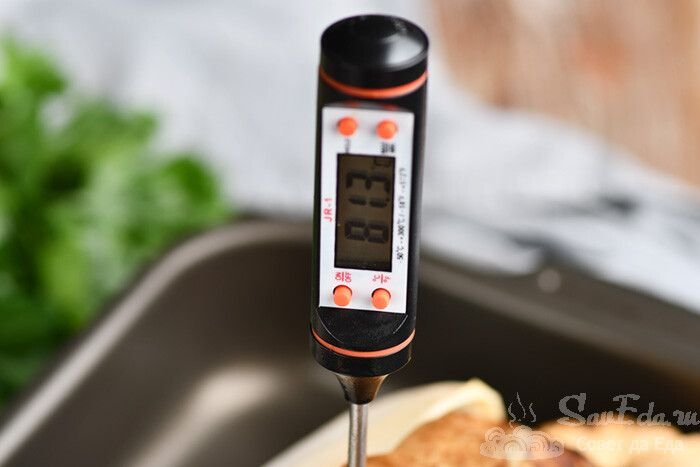 8. Через 1,5 часа температура внутри куска мяса 81 градус (свинина готова, если температура не ниже 71 градуса). Даем постоять 10 минут.