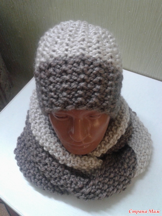 Узор очень простой: 1р. - 1 лицевая, 1 изнаночная, 2р. - все изнаночные, а снуд связан жемчужным узором.