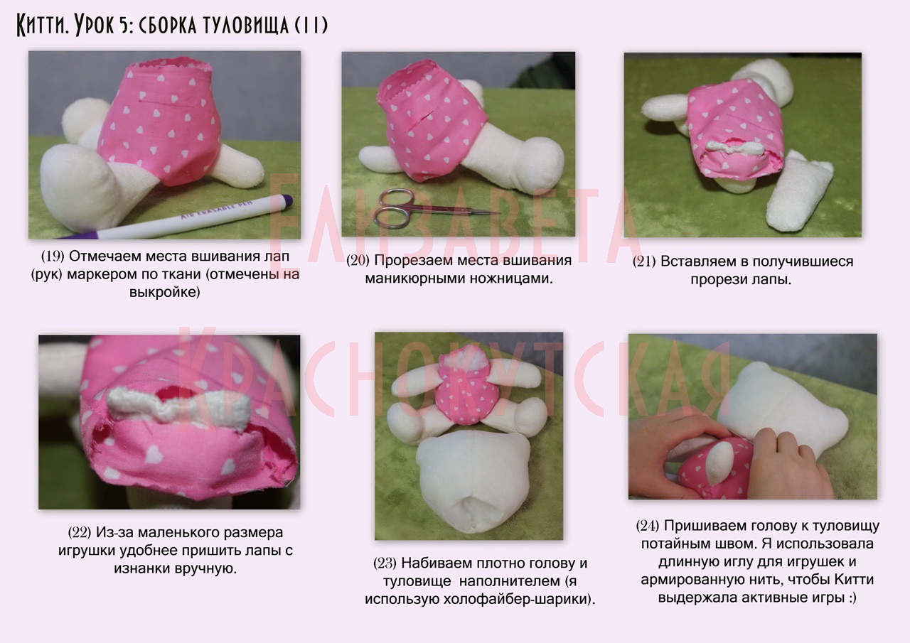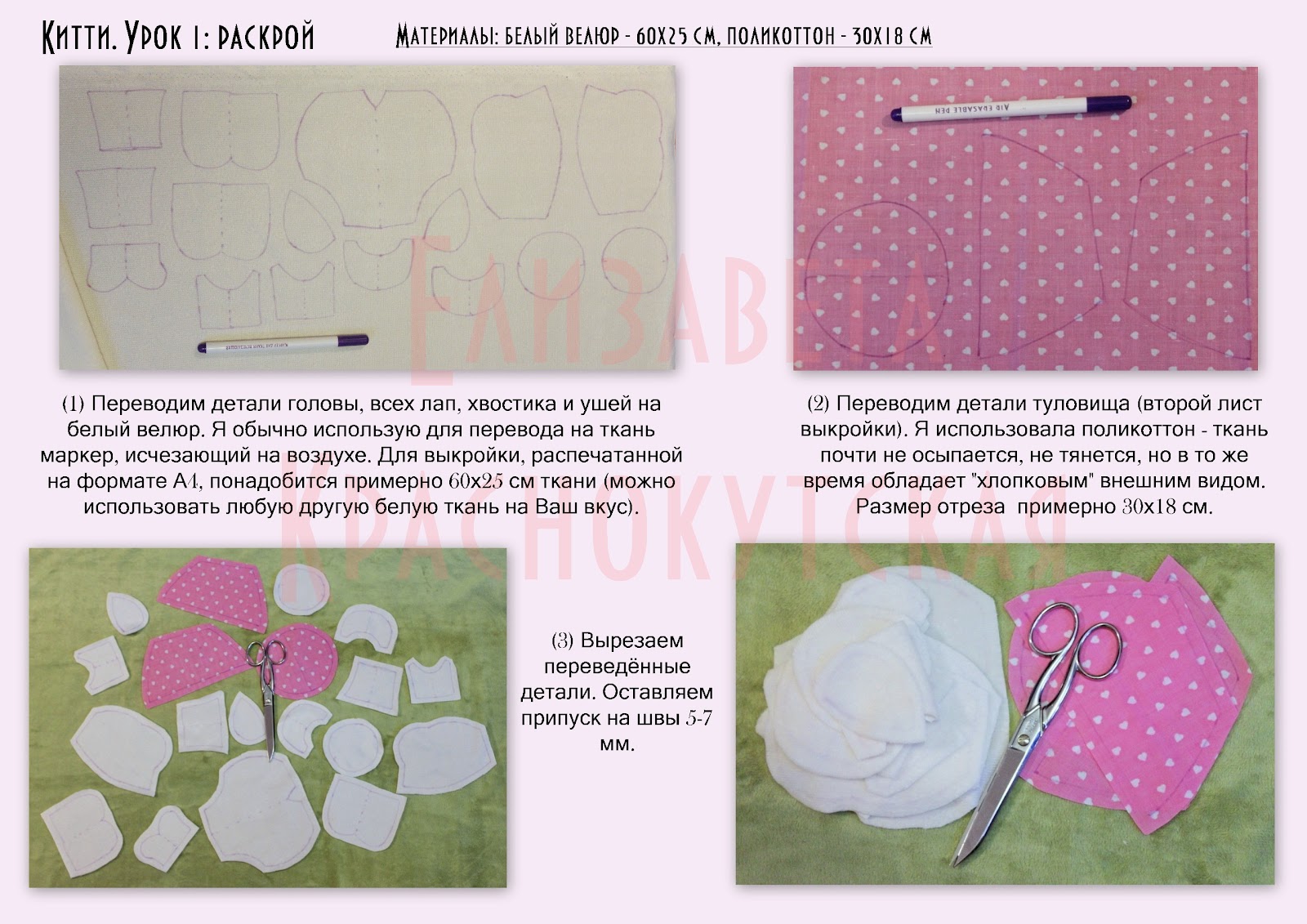 Как и обещала, начинаю выкладывать мастер-класс по шитью Китти. Сегодня первые 2 урока: раскрой и сборка головы.