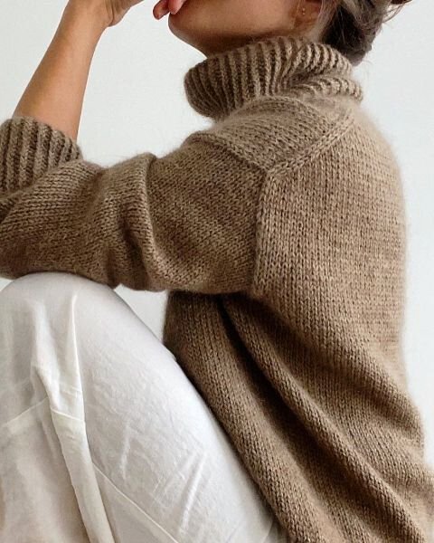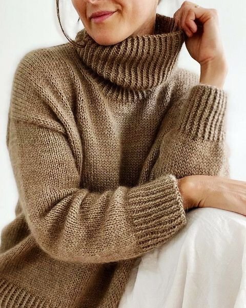 Предлагаю связать свитер свободного кроя, со спущенным плечом абсолютно без швов, начиная работу сверху вниз от горловины.