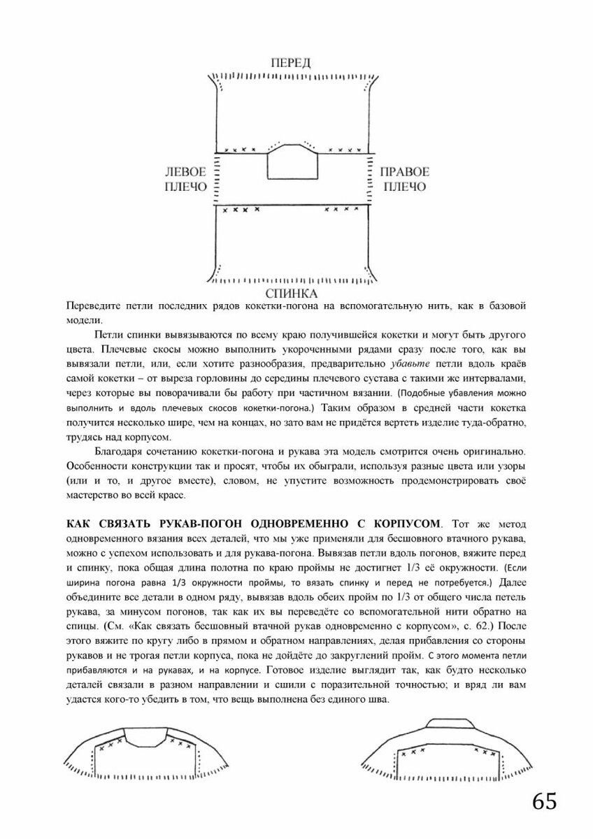 По пройме поднимаются петли для вязания рукава по кругу, с формированием оката укороченными рядами, также сверху-вниз.