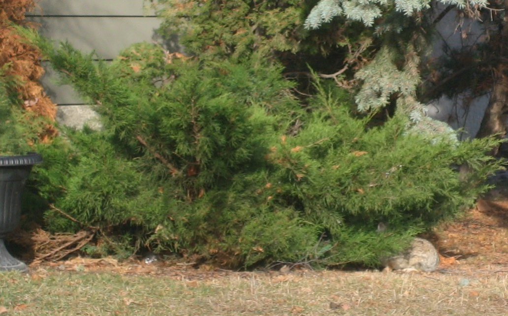 Видите его? Он считает, что очень хорошо спрятался. Их серые хвостики торчат из-под кустов даже в достаточно оживлённых районах. Не в даунтауне, конечно, но в паре кварталов от него их уже можно встретить.