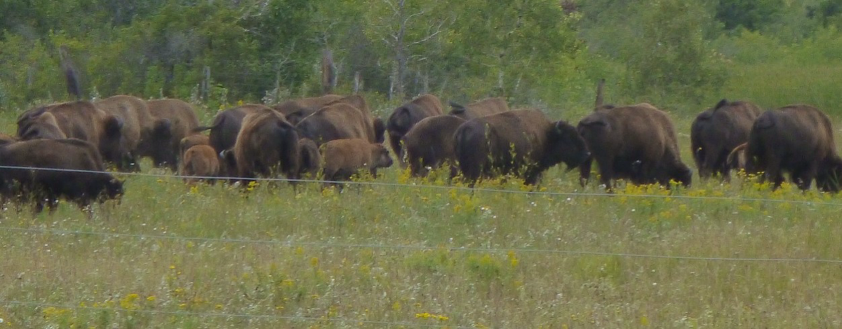 Поля, луга для скота, например, вот как для этих баффало, кустарники, но всё обнесено оградой, свободной земли нет. Только далеко на севере можно найти просто свободную землю, которую, скорее всего, хозяин просто не успел обнести оградой. Ещё такие земли называются Земли Короны, потому что принадлежат Королеве Великобритании (ну и Канады).