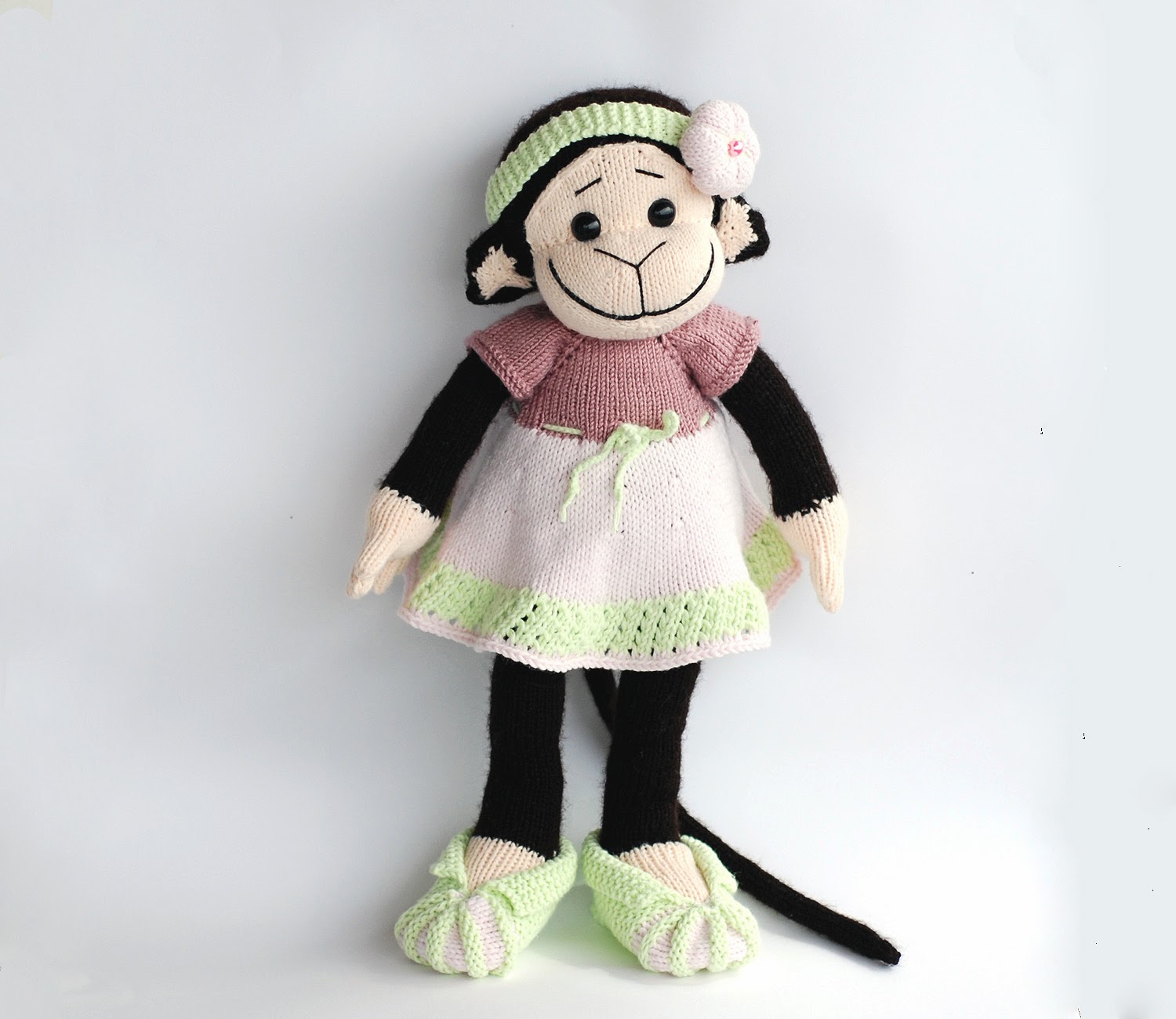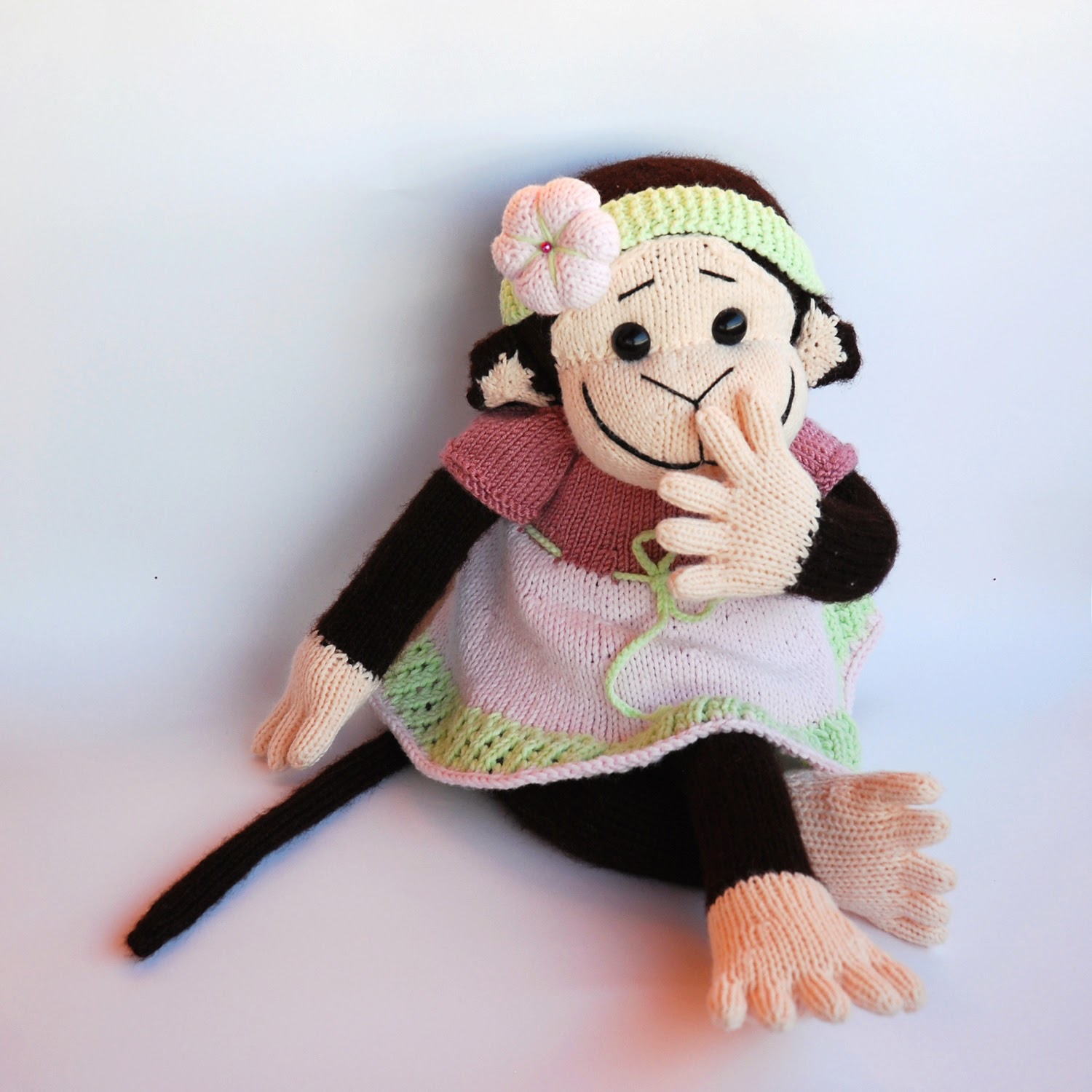 Эту мартышку я связала еще год назад. И она, бедненькая, просидела целый год голышом. И вот, наконец то, я связала ей платьице. 8)))
