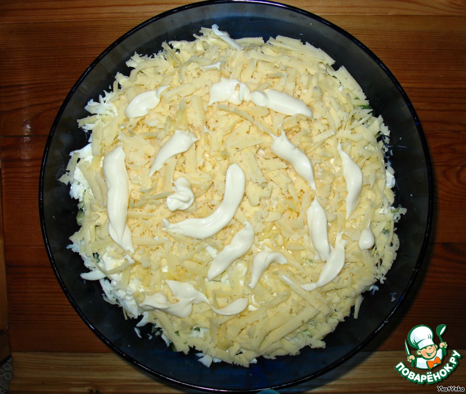 5 слой: сыр натираем на терке и смазываем майонезом, |