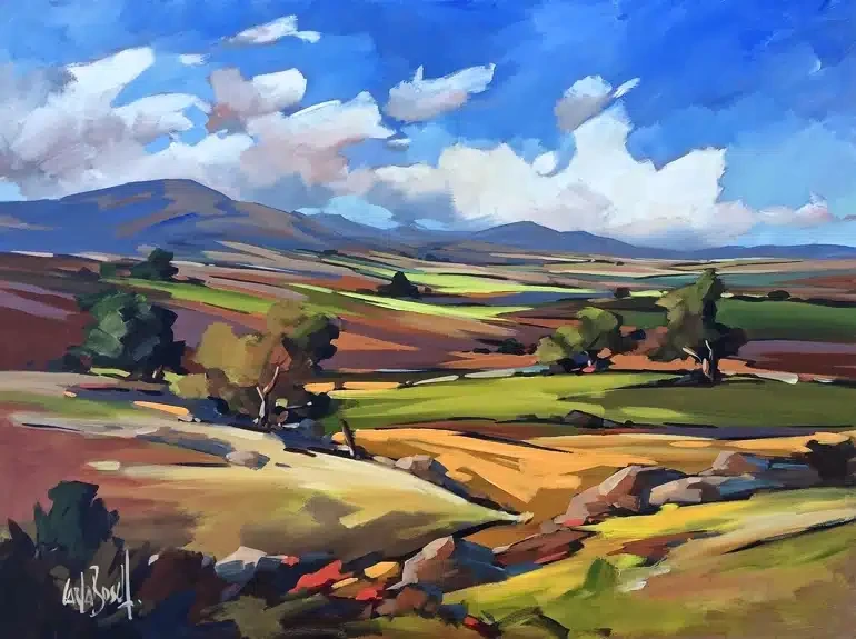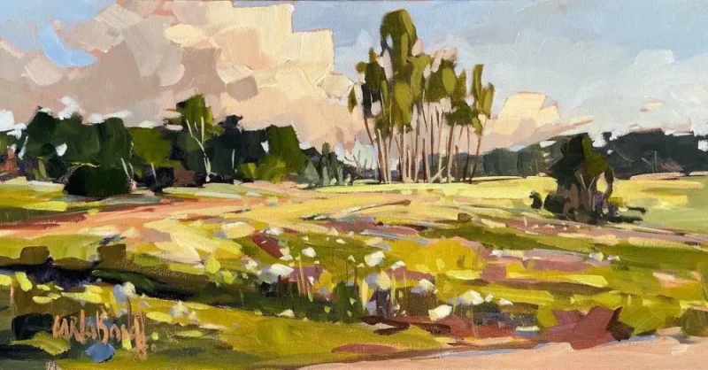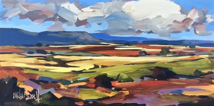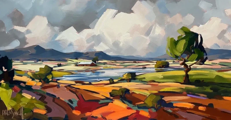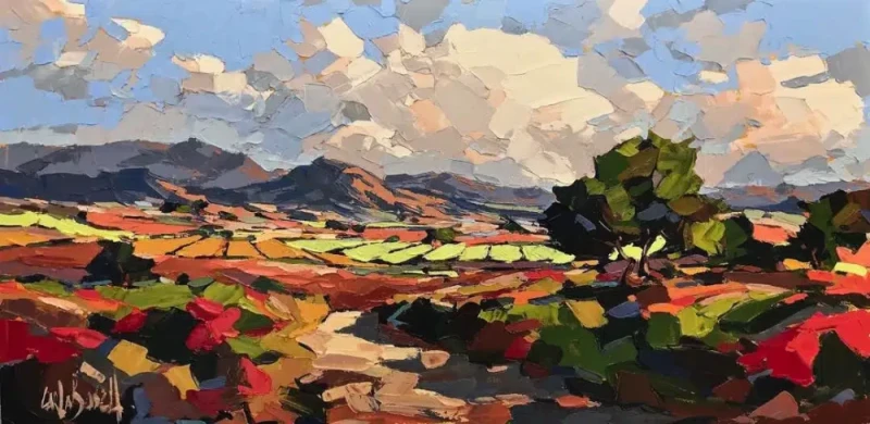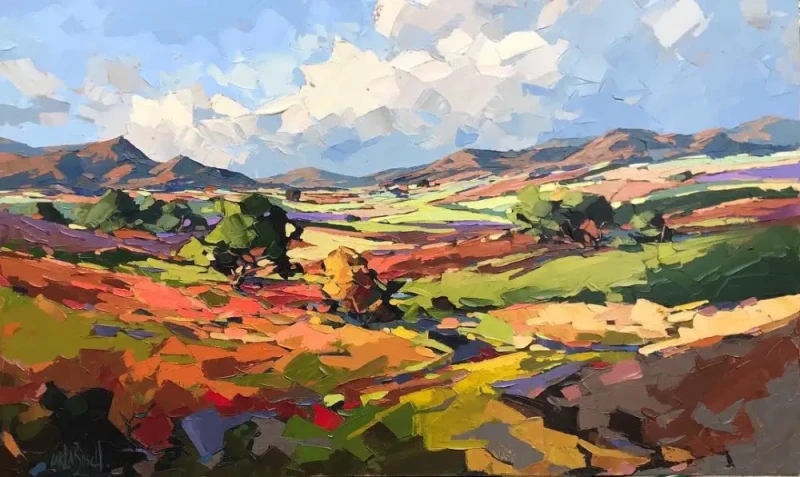 В конечном счете, вы видите пейзаж не только глазами. Я стараюсь донести этот контекст через свой смелый импрессионистический стиль. Моя цель — привести вас в этот опыт, я хочу, чтобы вы почувствовали эмоции прекрасного пейзажа, ощутили праздник красоты жизни”.