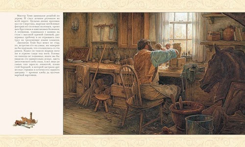 Неповторимый дух праздника и волшебства придают истории иллюстрации одного из самых волшебных художников – П. Дж. Линча, который еще глубже погружает нас в мир мистера Туми и его юного друга, заставляет мерзнуть холодной зимой, разглядывать резные игрушки, ждать рождества и верить в чудо.