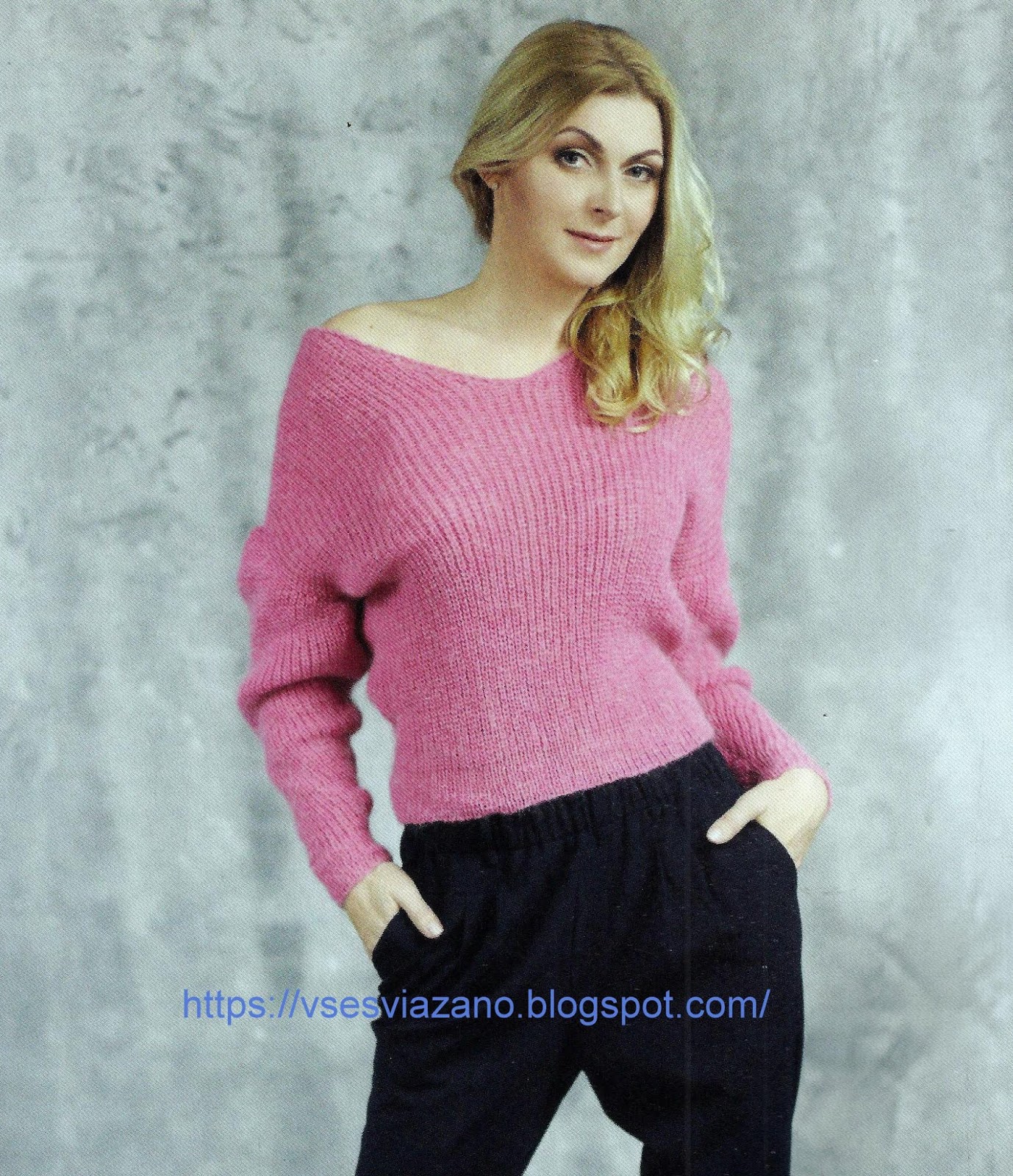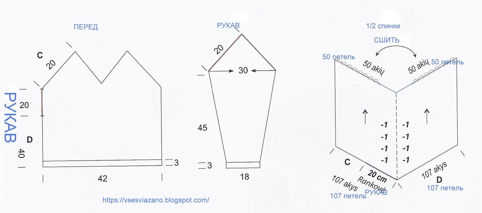 ВНИМАНИЕ: судя по виду оригинального французского пуловера, намного красивее будет, если вязать свободнее и пошире- чуть увеличьте выкройку, пуловер не должен облегать!!!