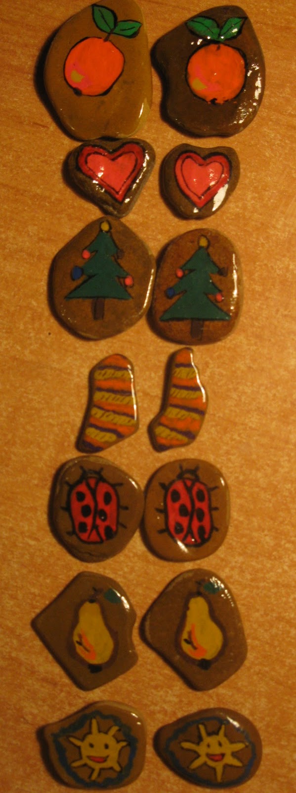 А вот и по парам. Часть ещё в работе - будут рыбки,сапожки, домики и ... Спешить некуда, так как плюшка ещё мал для такой игры - всё в рот их тащит.