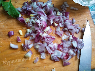 Луковичку режем мелким кубиком