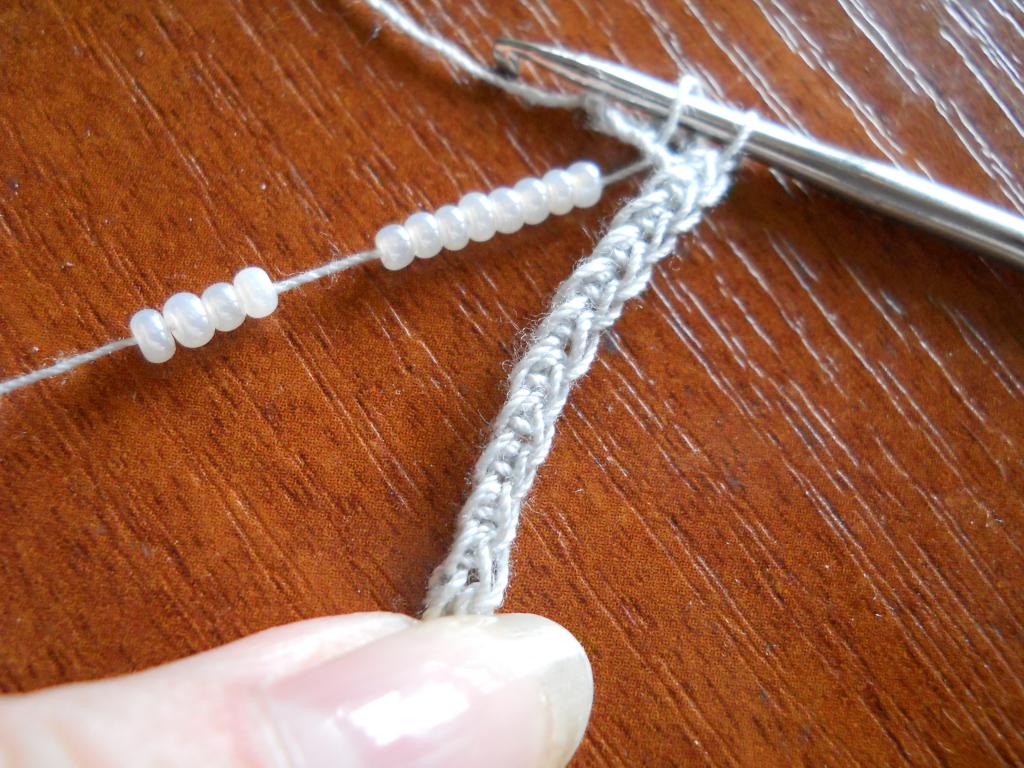 Кстати, оборванную нитку я не привязываю к новой, т.е. не делаю узелков. Прикладываю одну нитку к другой и несколько петель провязываю в две нитки. Хвостики прячу в вывязанном полотне. Ну это уж у каждого свой способ нарабатывается. Вяжу рисунок так: провязываю первый ряд, затем делаю полу-столбик, затем в этом же месте начинаю вязать следующий ряд. Некоторые делают воздушную петлю, но мне не понравилось. Ее заметно. А мой способ позволяет бисерному полотну выглядеть равномерно, а бисеринкам - находиться одна над другой.