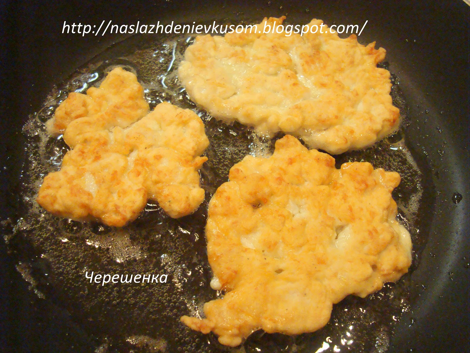 Теперь нагреваем сковороду с маслом и обжариваем оладушки на среднем огне до золотистого цвета, минут по 5 с каждой стороны…