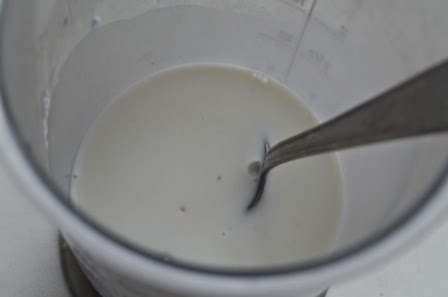 10. В оставшиеся 200 мл молока добавить крахмал и размешать его.