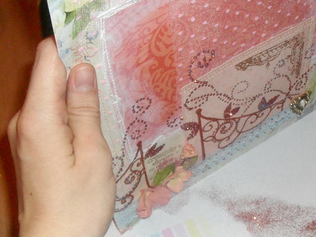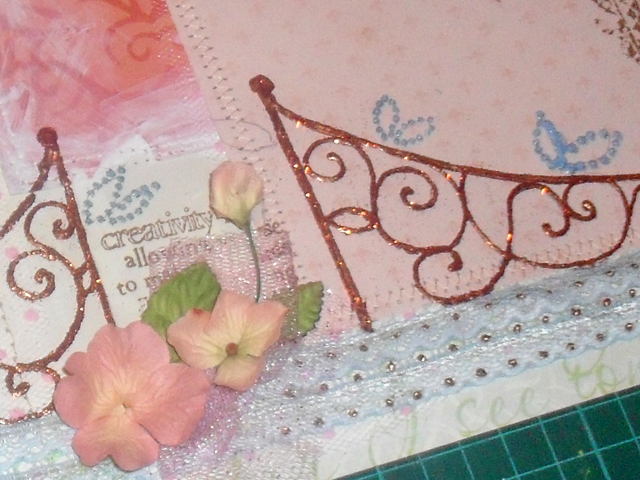 Вечер близился, я продолжая работу над свадебным альбомом, вдруг, неожиданно даже для самой себя решила сделать МК по декору странички. Хочу показать вам как я делала вот такую кованную решетку с цветущим садом).
