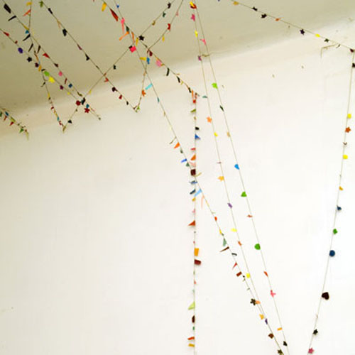 Мне ещё очень симпатична вот такая гирлянда, которую можно запросто сделать вместе с ребёнком. Просто собрать какие-то мелочи и подвесить их на нитках)