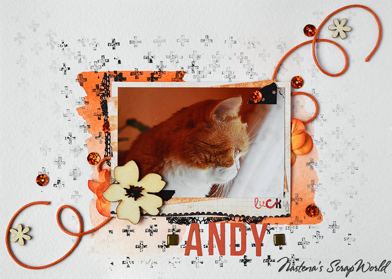 Пожалуй, сделаем акварельный мини-альбом про мой рыжий зверинец)) Размер 15х20 см. Герой первой странички - важный кот:) Заливка оранжевой краской с эффектом омбре и пайетки в тон.
