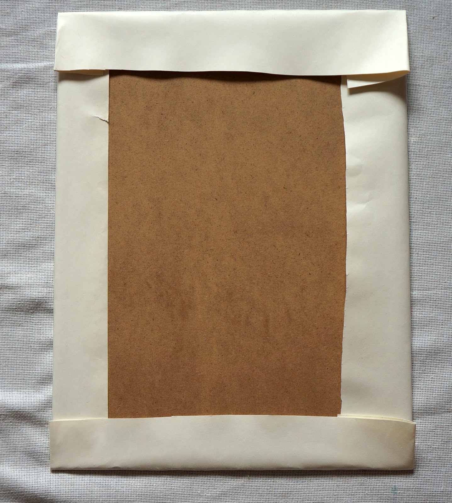 и положила сохнуть на ночь в горизонтальном положении бумагой вверх. Утром все выглядело ровненьким и натянутым, без пузырей, вот так: