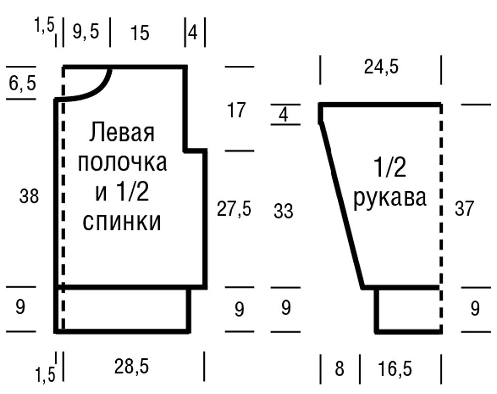 Пройму с правого края выполнить, как на спинке = 52 п.