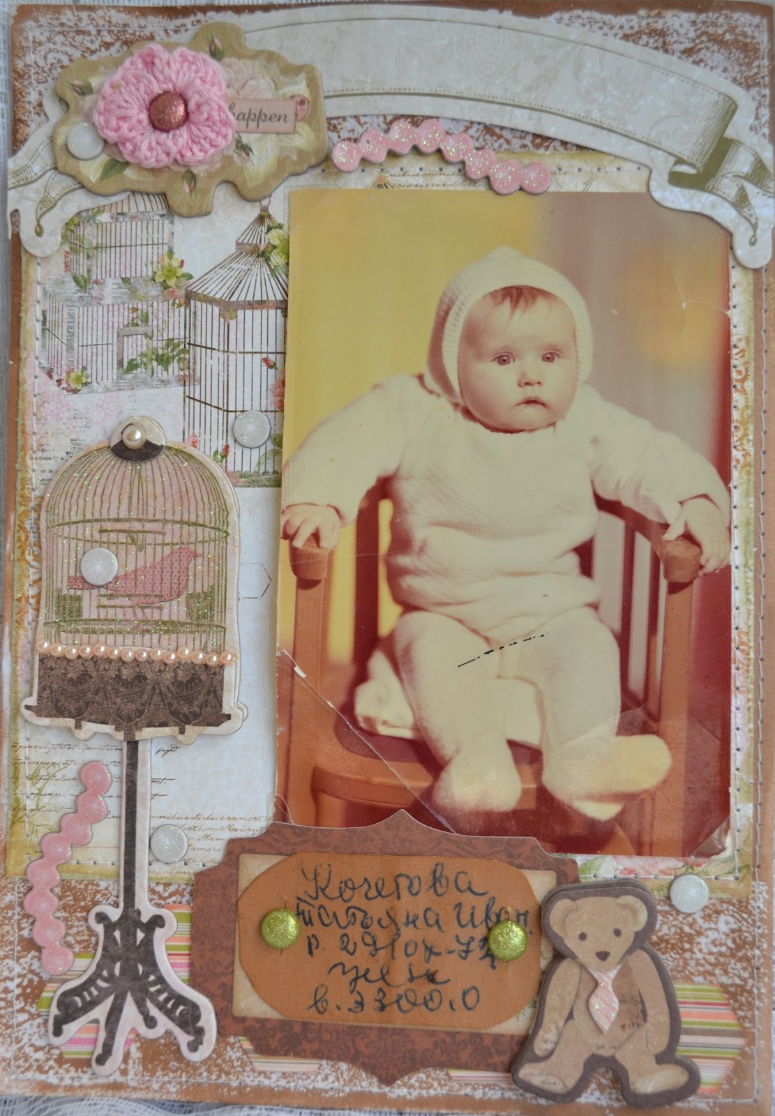 Сначала была бумага. Нежная, винтажная. Вся такая по-девчачьи сладенькая. И ,когда я взяла ее в руки, то поняла, что здесь будут жить мои детские фотки))))