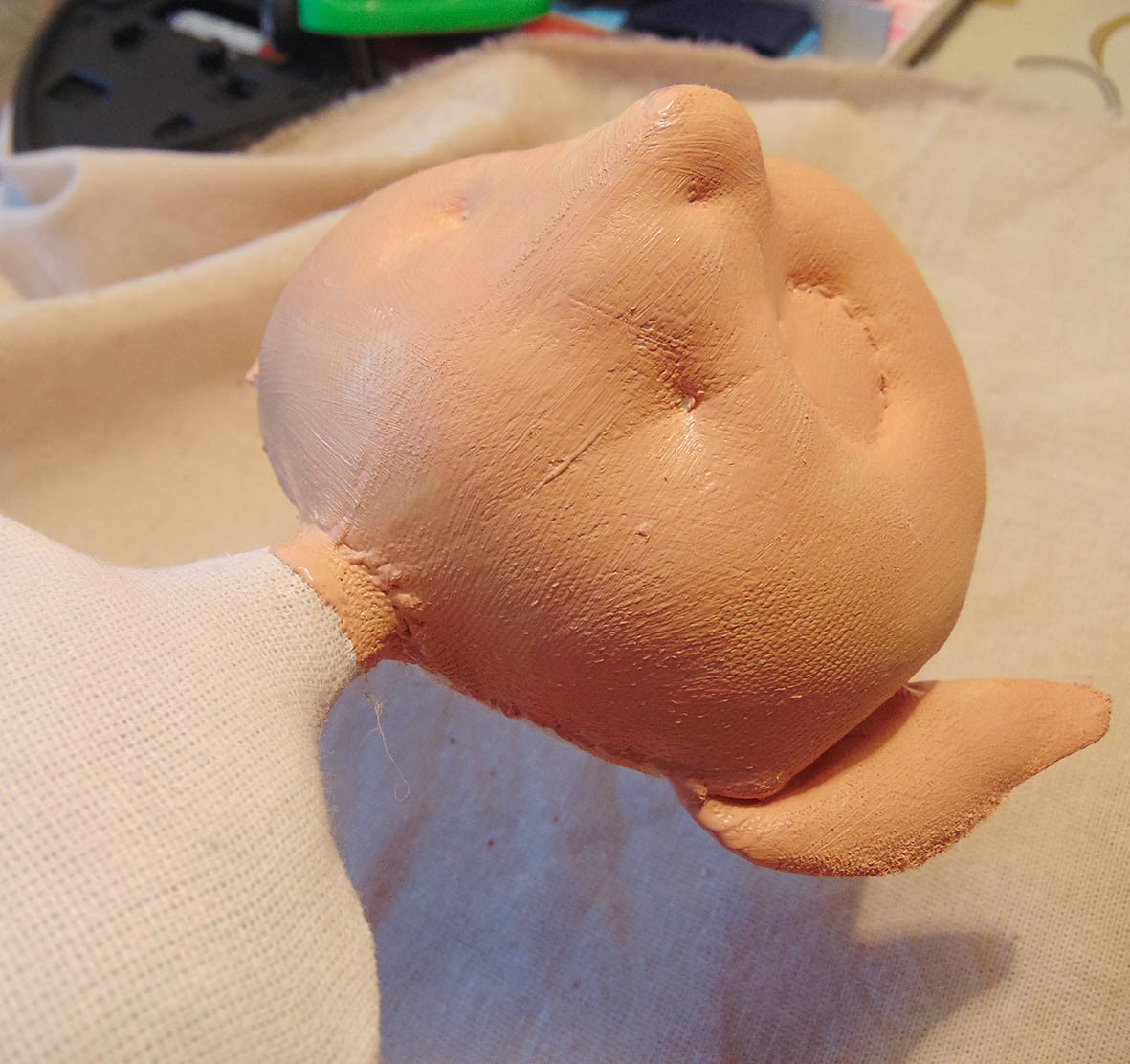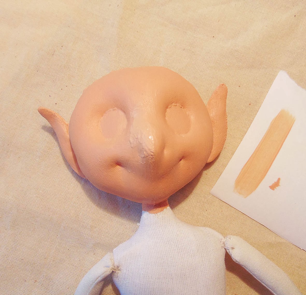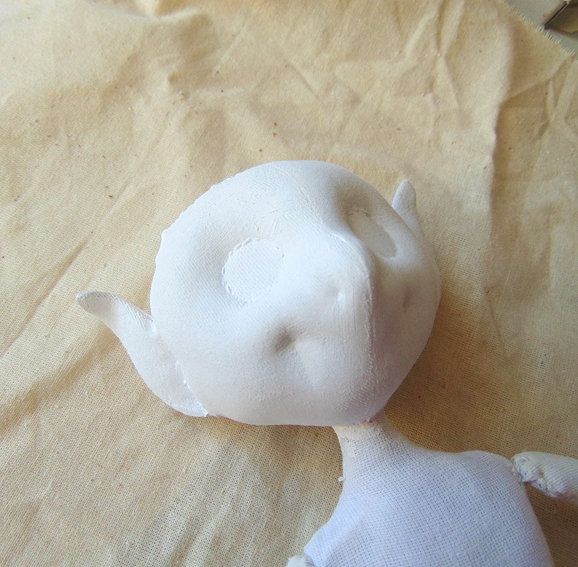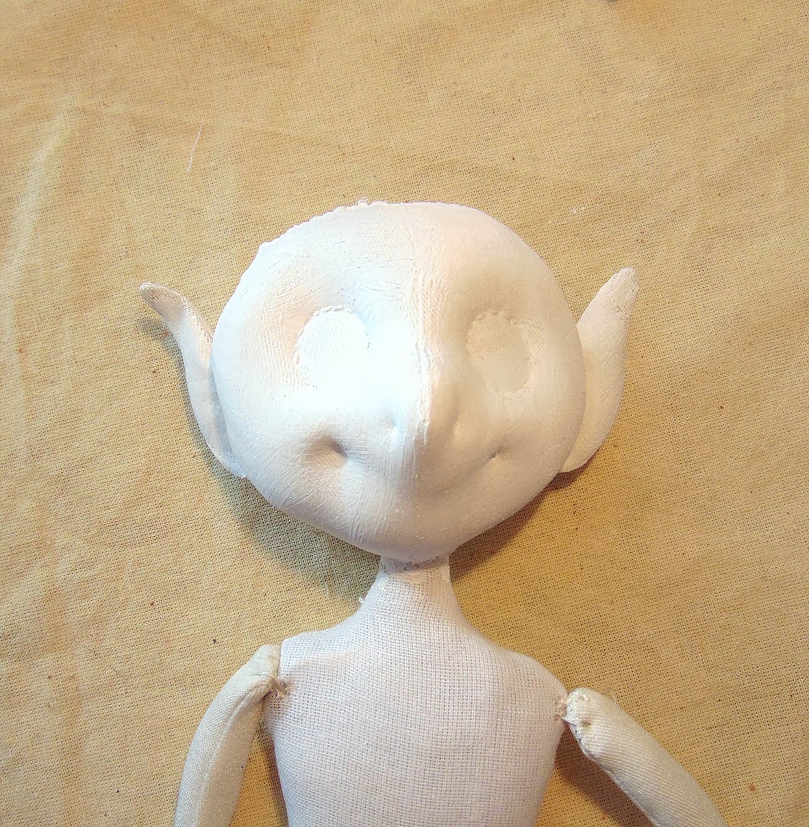При работе над грунтованным текстилем, все индивидуально, для разных кукол могут быть разные составы грунтовки и порядок их наложения, способы шлифовки или ее отсутствие.