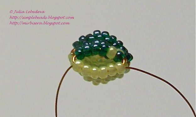 Верхний ярус - 1 жёлтая и 3 зелёные бисеринки.