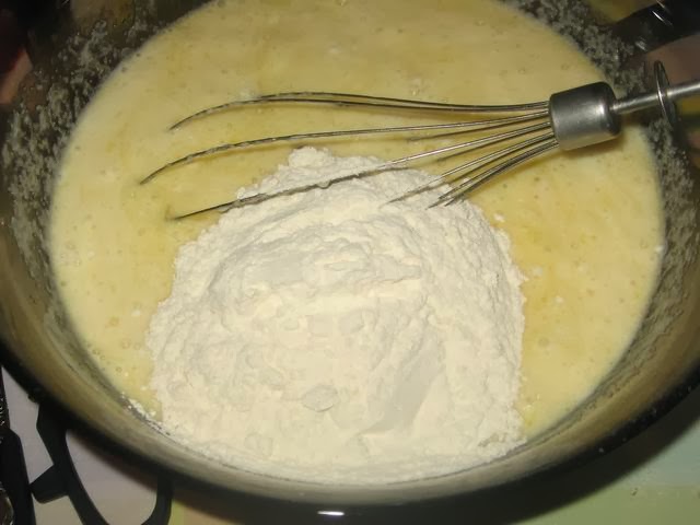 Перемешиваем, добавляем муку.