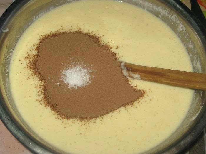 Потом добавить какао и соль. Соль усилит шоколадный вкус.