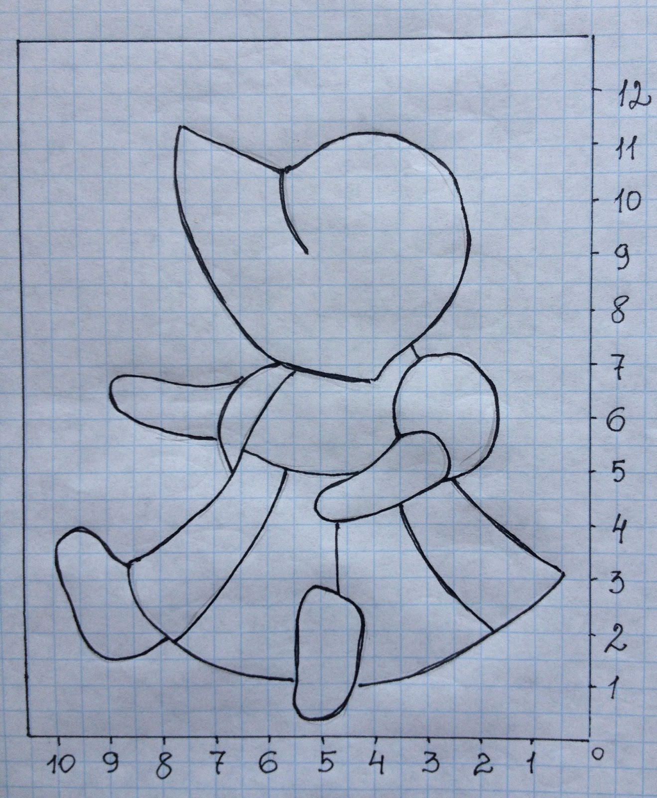 Шибко грамотные умеют это делать на компьютере. Я же все проделала дедовским, вернее, детсадовским способом: с помощью клея и ножниц (хвала советскому дошкольному образованию!). Поскольку рисунок на тонкой бумаге, я выкройки и детали наклеивала на альбомные листы.