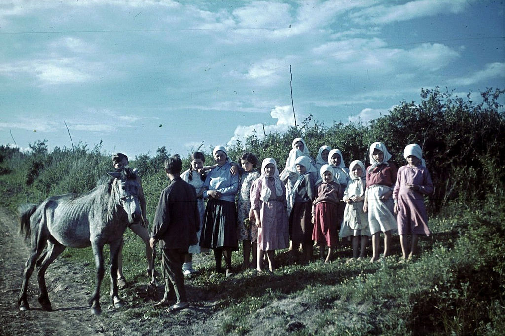 Венгерские солдаты перевозили детей на телеге, советский восточный фронт, 1942 |