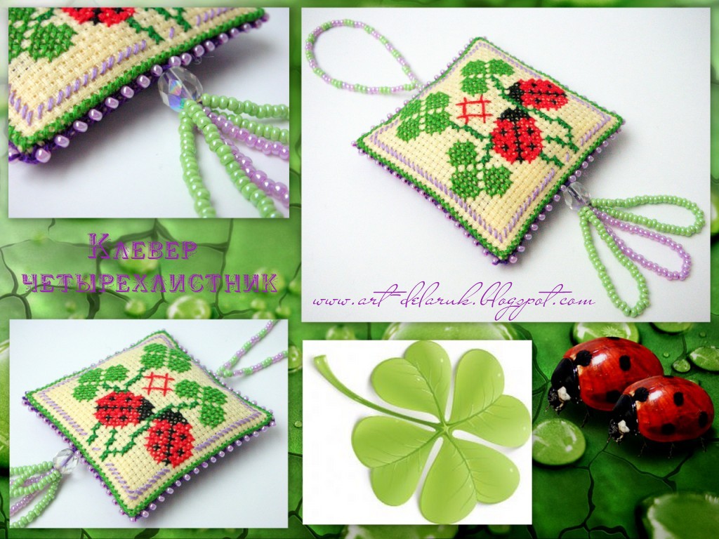 Божья коровка тоже изревле считается символом удачи и счастья. Большинство народов почитают этих посланниц Бога и относятся к ним очень трепетно. Сначала покажу то, что в итоге получилось, а потом поделюсь найденным материалом о четырехлистном клевере. Это интересно...