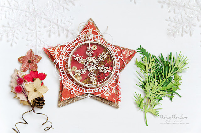 Маша Мамлеева. Все уже елочки поставили?:) У нас есть семейная традиция, мы каждый год с детьми делаем новые елочные украшения и этот год не исключение. Мальчишки как всегда красят деревяшки, а я решила сделать звезду на макушку. Именно о ее создании сегодня я вам и расскажу. Сам МК довольно простой и каких-то специальных материалов не требует и подойдет даже для совсем новичков в скрапе:)
