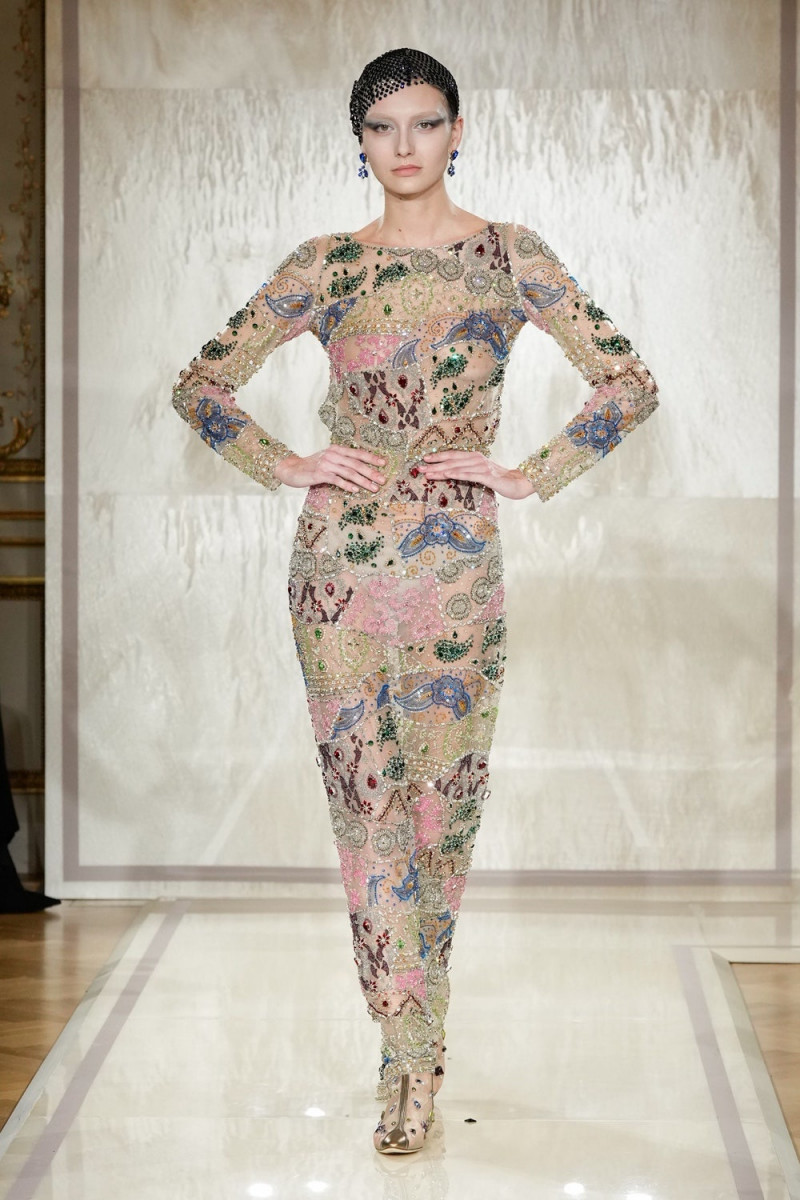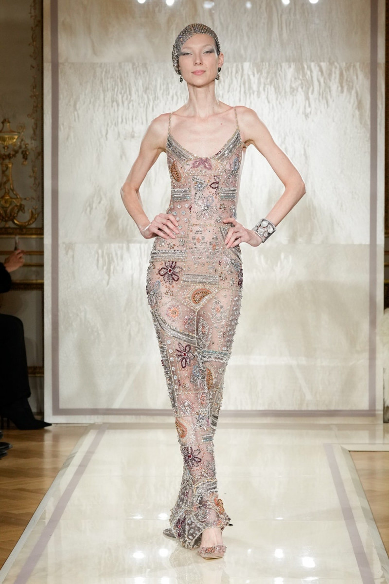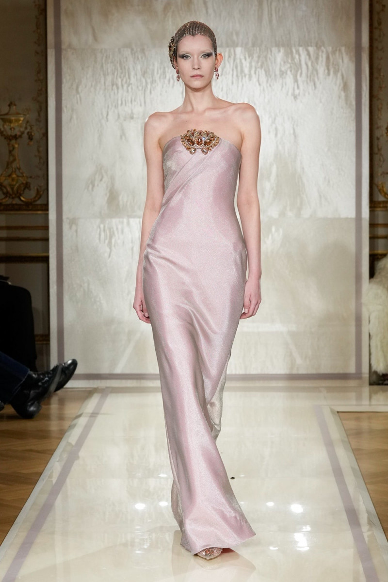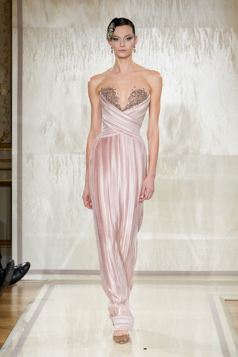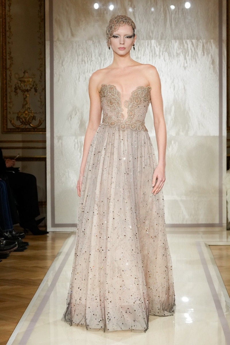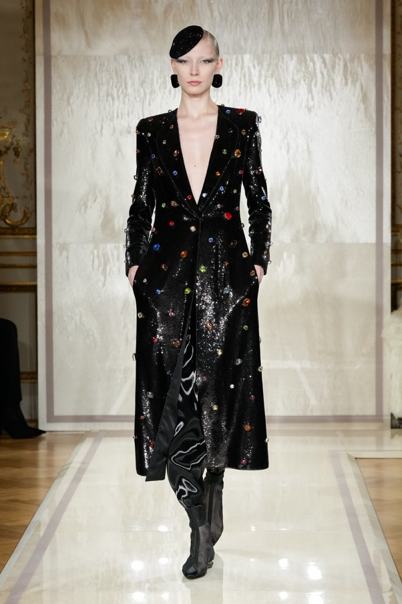 " Lumières Коллекция была исследованием сияния, пронизанного фирменной сдержанностью и утонченностью Армани. От жидких атласов, которые обволакивали тело, как расплавленное золото, до сложных, вышитых вручную сеток, накладывающихся на струящиеся брючные костюмы, одежда сияла тихим, но властным блеском. Блестящие платья со смелыми вырезами и драгоценными акцентами ловили свет при каждом движении, подтверждая непревзойденное мастерство Армани в создании элегантности без излишеств.