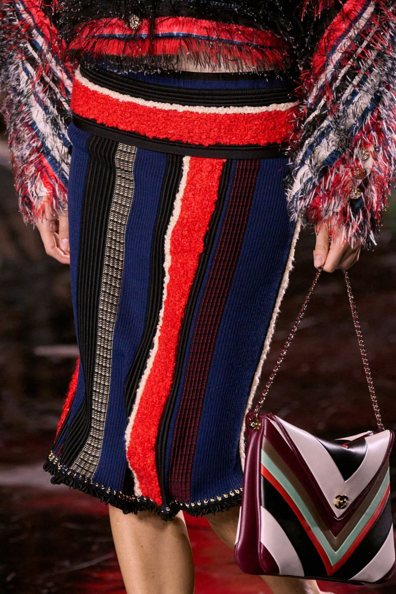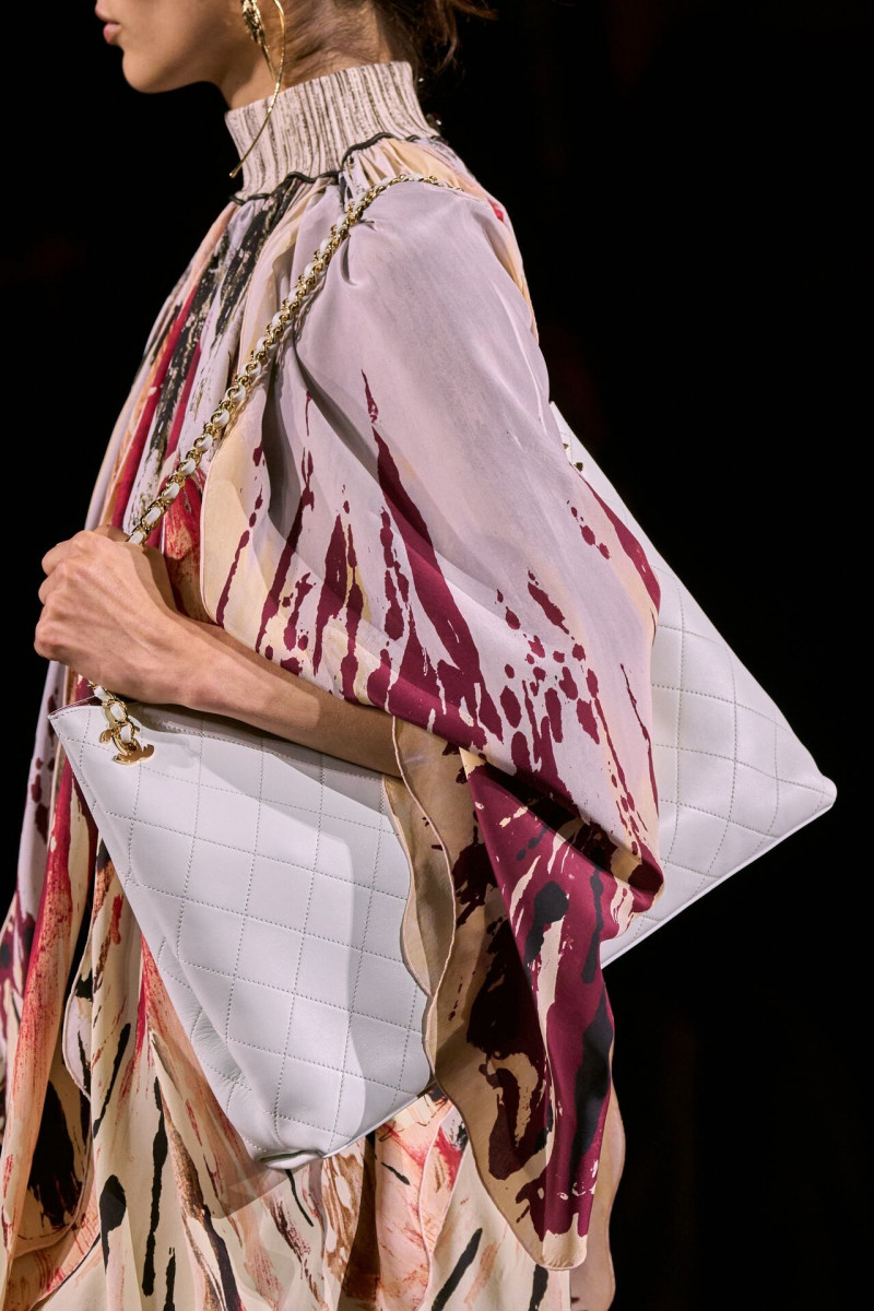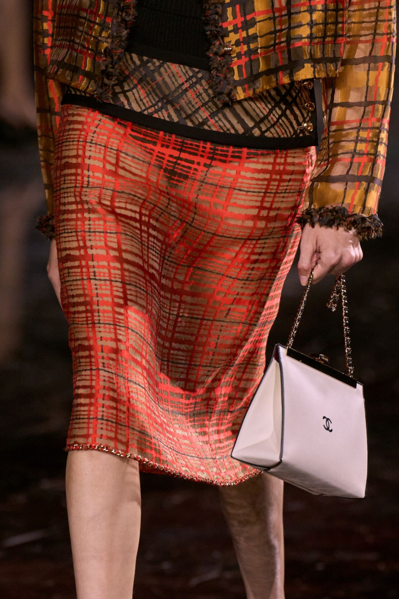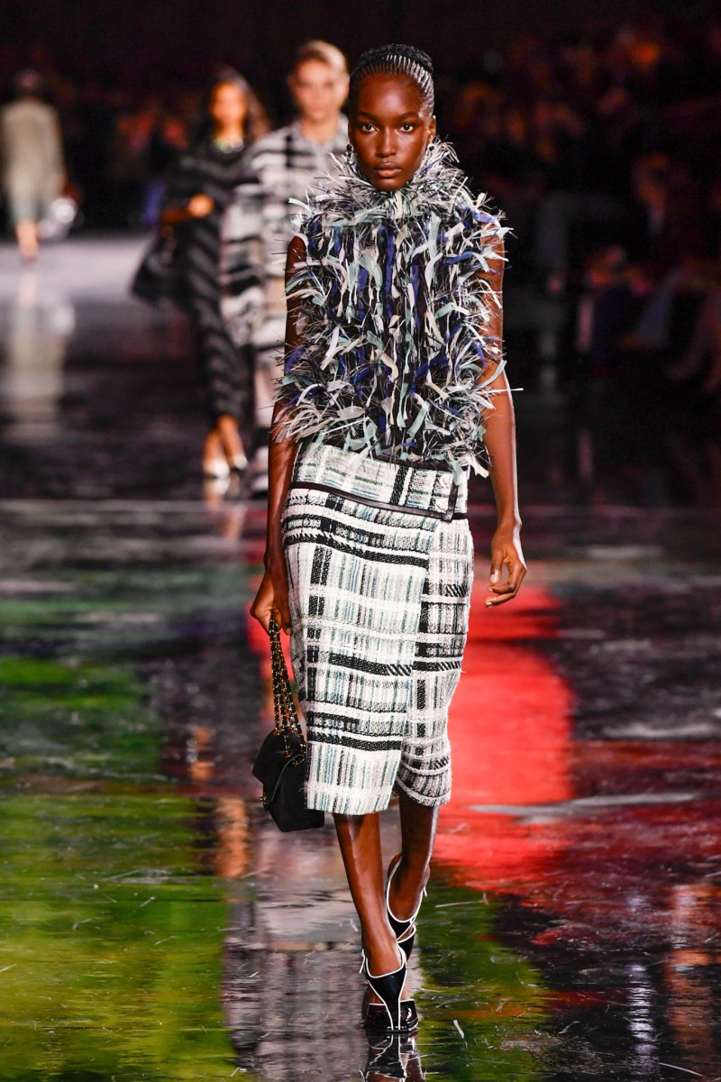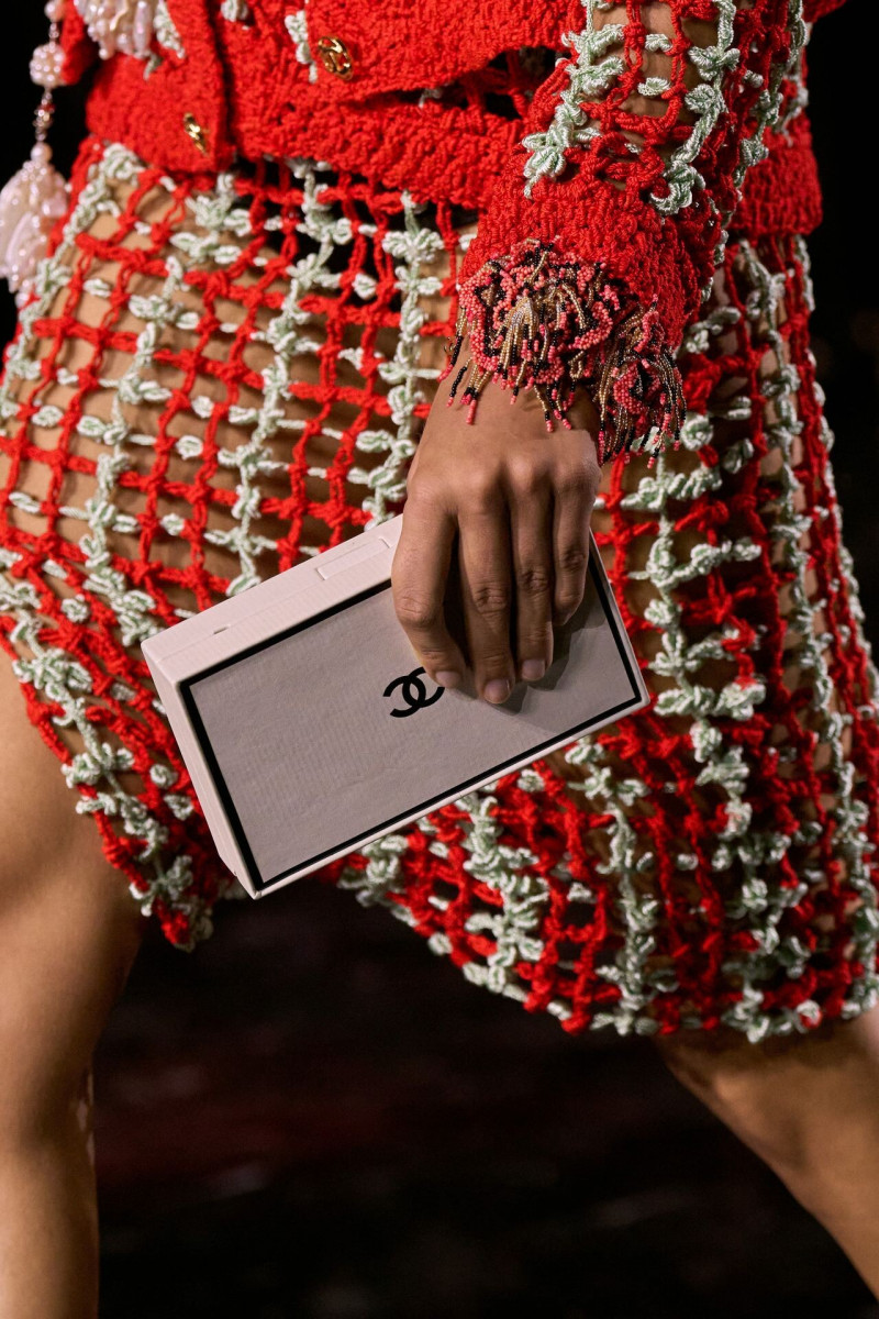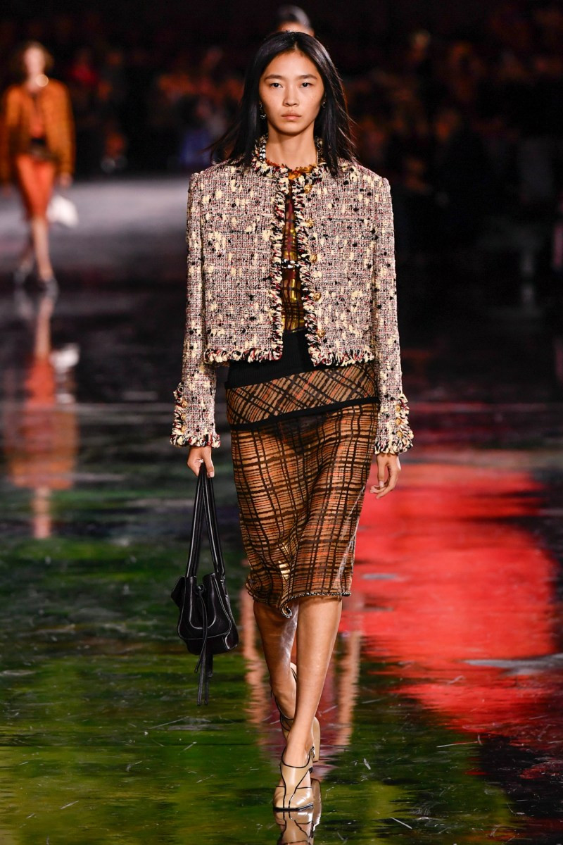 Отдельного разговора заслуживает твид. За двое суток до показа в индустрии «пополз слух», что в «новом Chanel» не будет твида. По факту — и да, и нет. Твидовых образов на подиуме все-таки было достаточно. Прежде всего, платьев и двоек с юбками. Но это не твид в привычном, традиционном понимании. Еще в бытность своей работы с Bottega Veneta, Блази экспериментировал с инновационными тканями-обманками. Вот и у Chanel твид ощущается мягким как трикотаж, он струится и становится полупрозрачным в вечерних образах, облегчается, становятся «подвижными», хотя и сохраняет в некоторых образах свою строгость и элегантность. Фантастический коммерческий потенциал у мешковатых бомберов из облегченного твида.