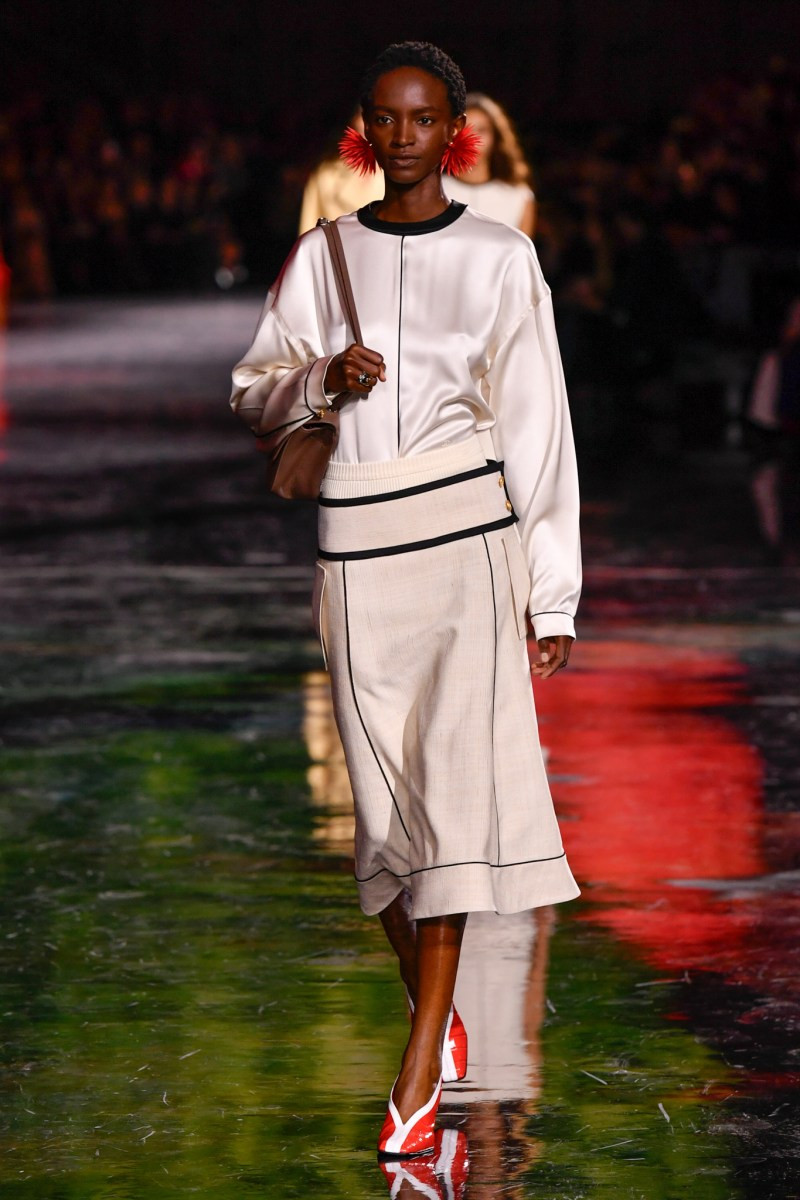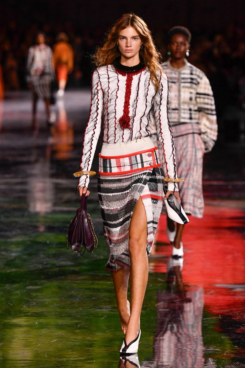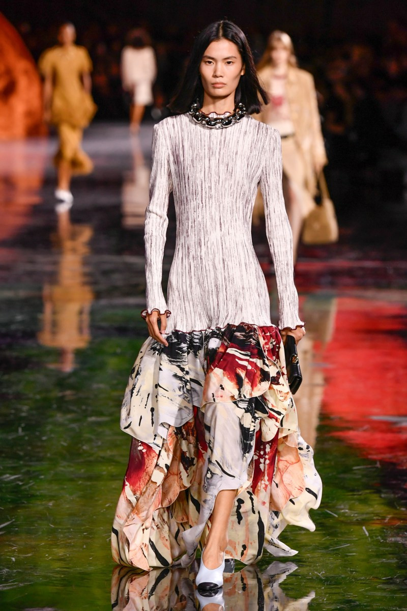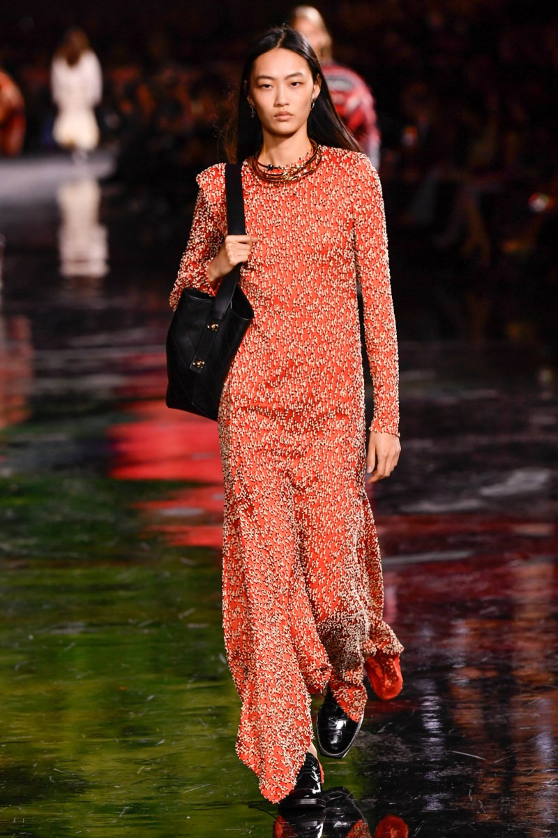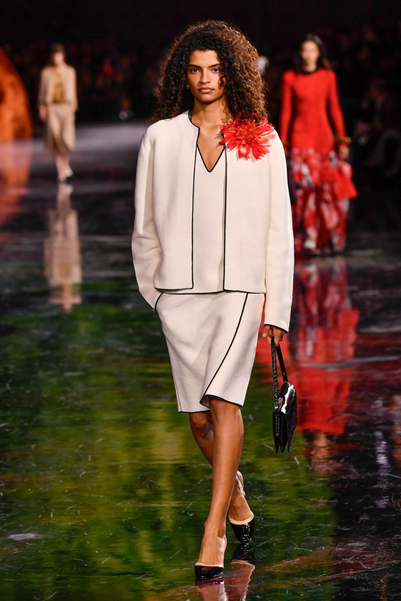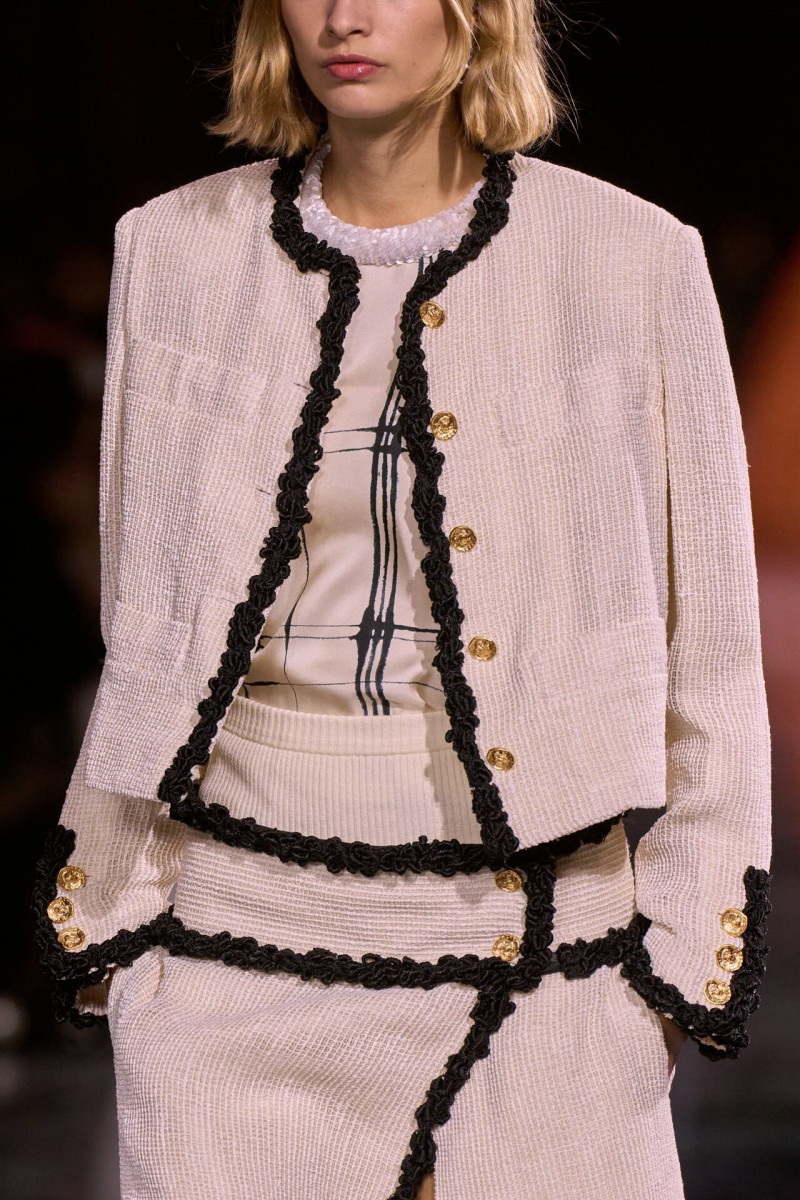 Отдельного разговора заслуживает твид. За двое суток до показа в индустрии «пополз слух», что в «новом Chanel» не будет твида. По факту — и да, и нет. Твидовых образов на подиуме все-таки было достаточно. Прежде всего, платьев и двоек с юбками. Но это не твид в привычном, традиционном понимании. Еще в бытность своей работы с Bottega Veneta, Блази экспериментировал с инновационными тканями-обманками. Вот и у Chanel твид ощущается мягким как трикотаж, он струится и становится полупрозрачным в вечерних образах, облегчается, становятся «подвижными», хотя и сохраняет в некоторых образах свою строгость и элегантность. Фантастический коммерческий потенциал у мешковатых бомберов из облегченного твида.