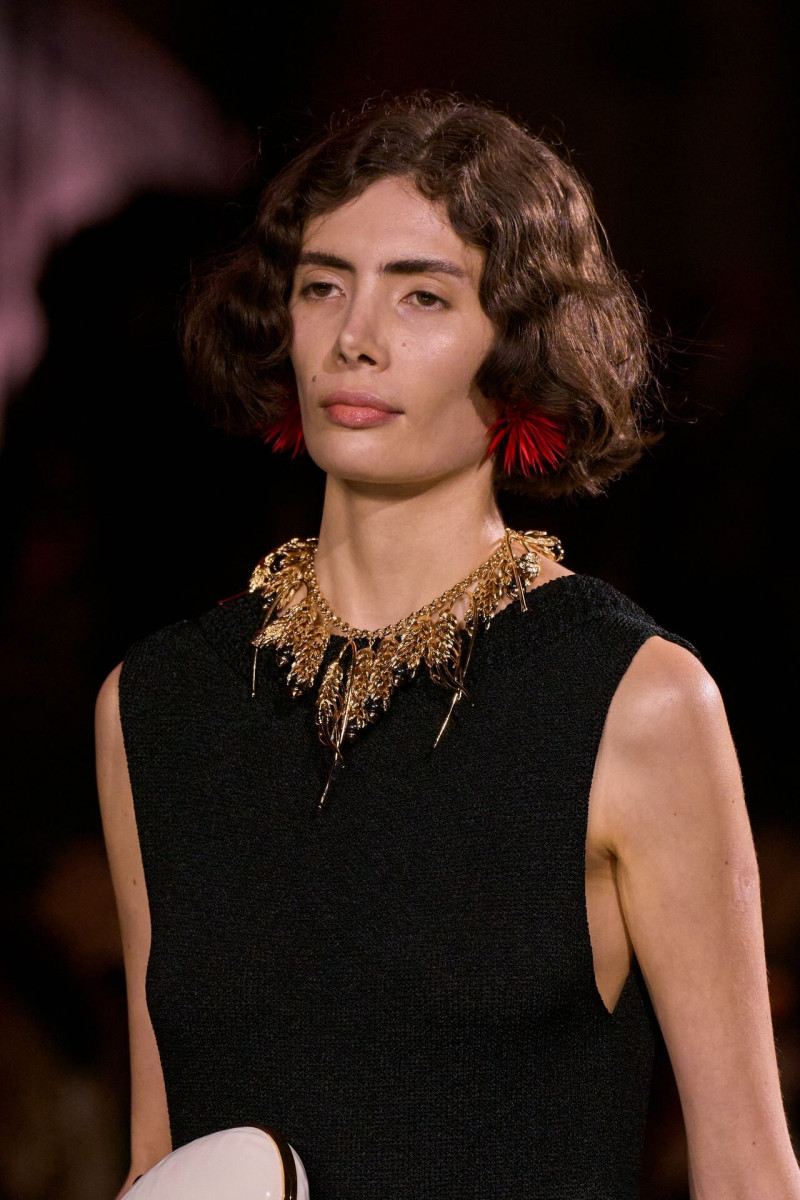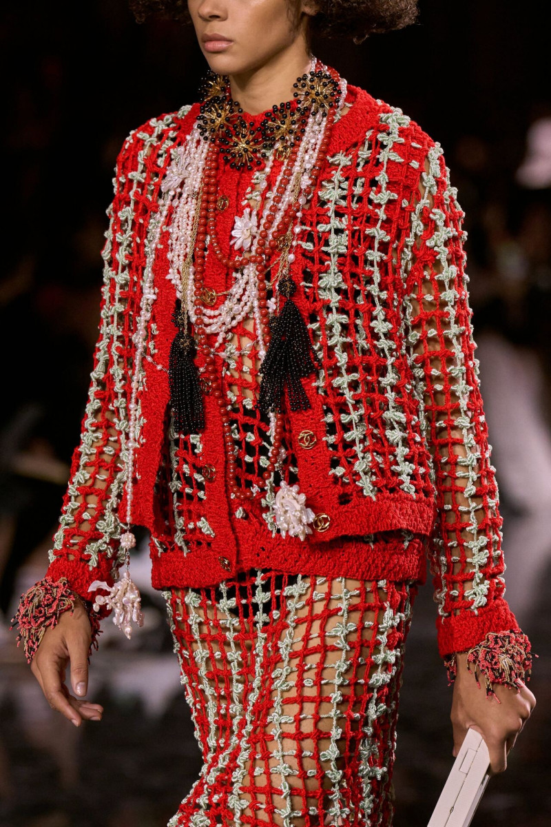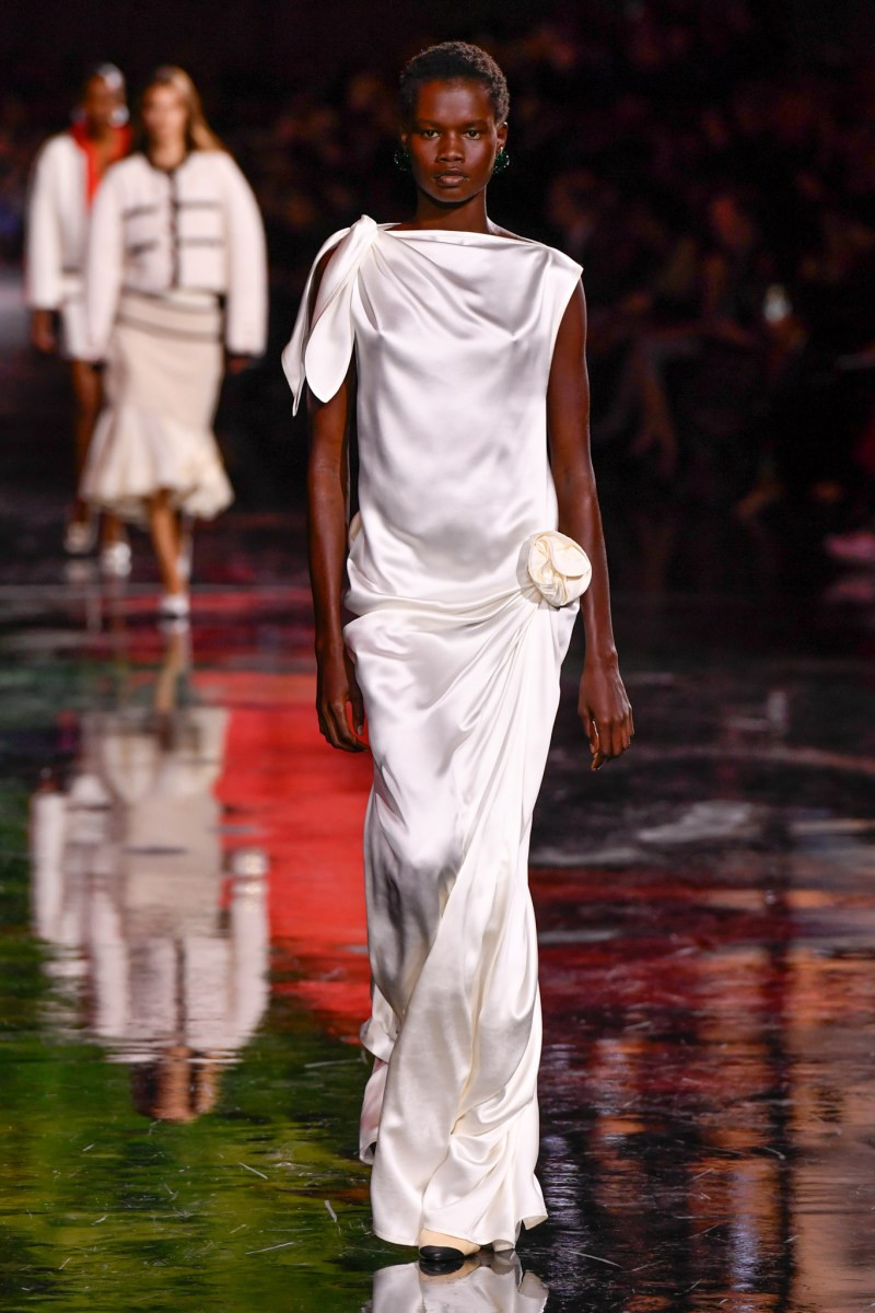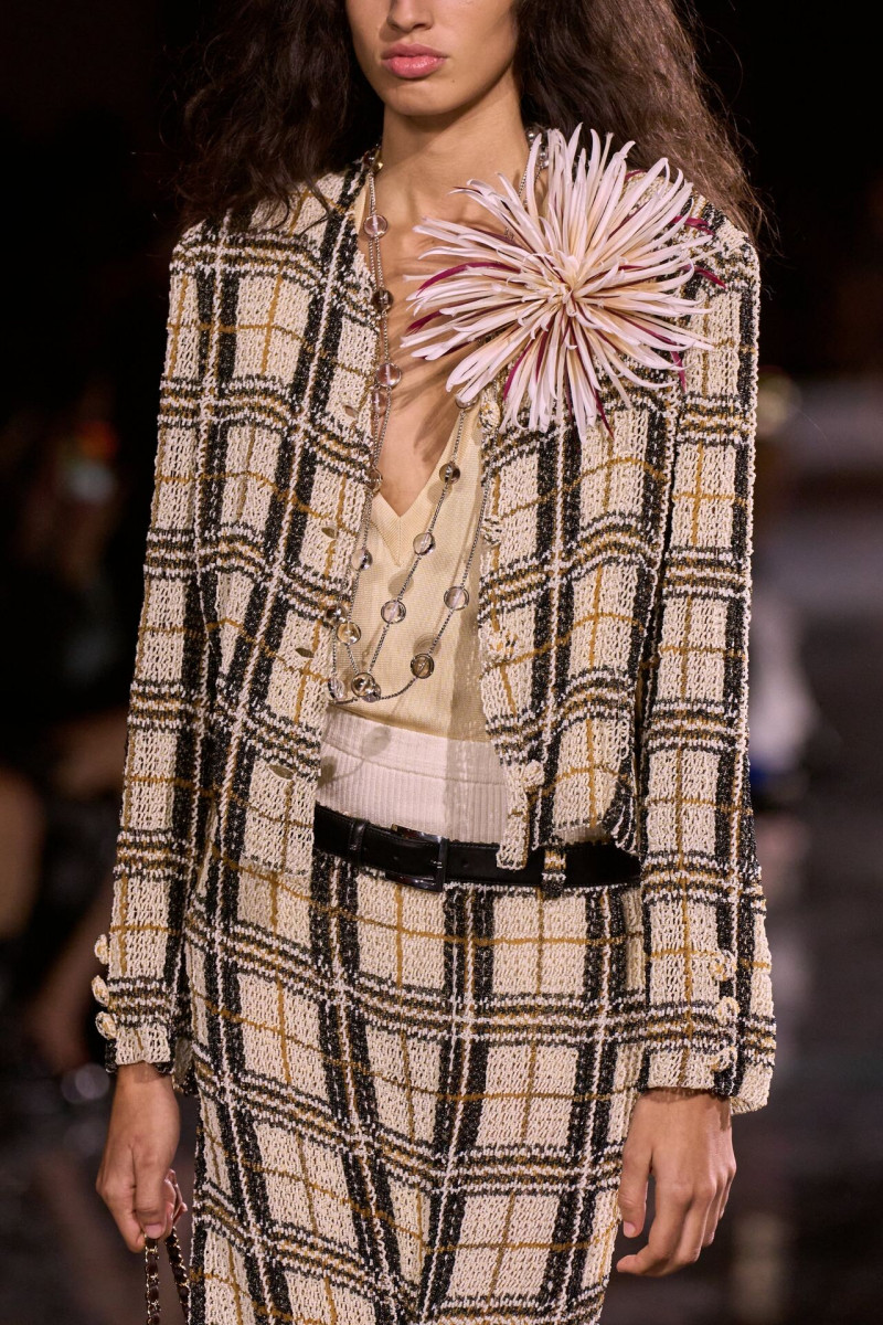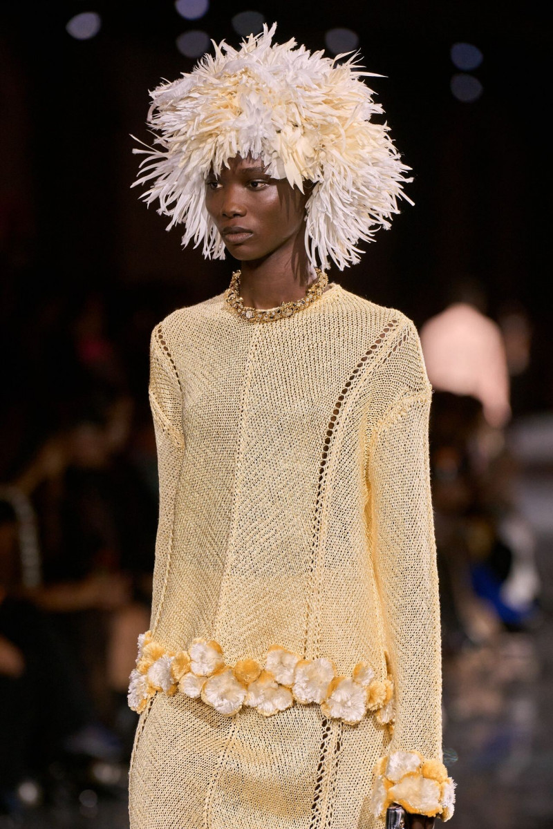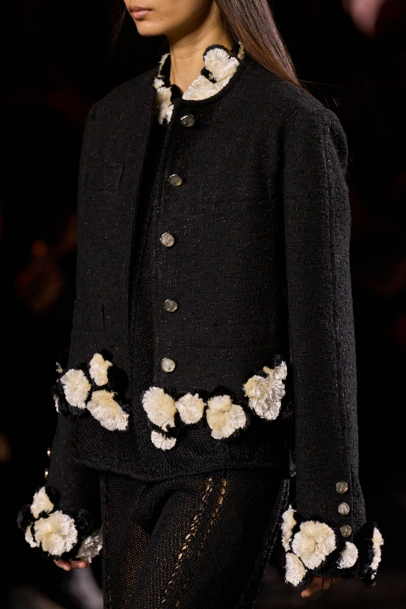 Помимо «очень Chanel» несколько образов на подиуме были «очень Блази». Дизайнеру позволили эту креативную вольность, как когда-то позволяли Карлу Лагерфельду. Мы увидели почерк дизайнера в образах с юбками-фламенко, головными уборами, похожими на «соломенные» парики, цветочных мотивах, выполненных из перьев.