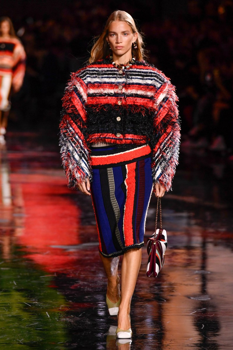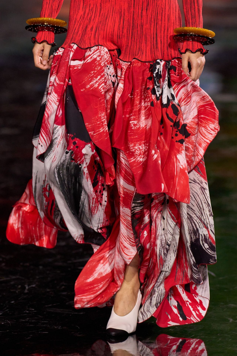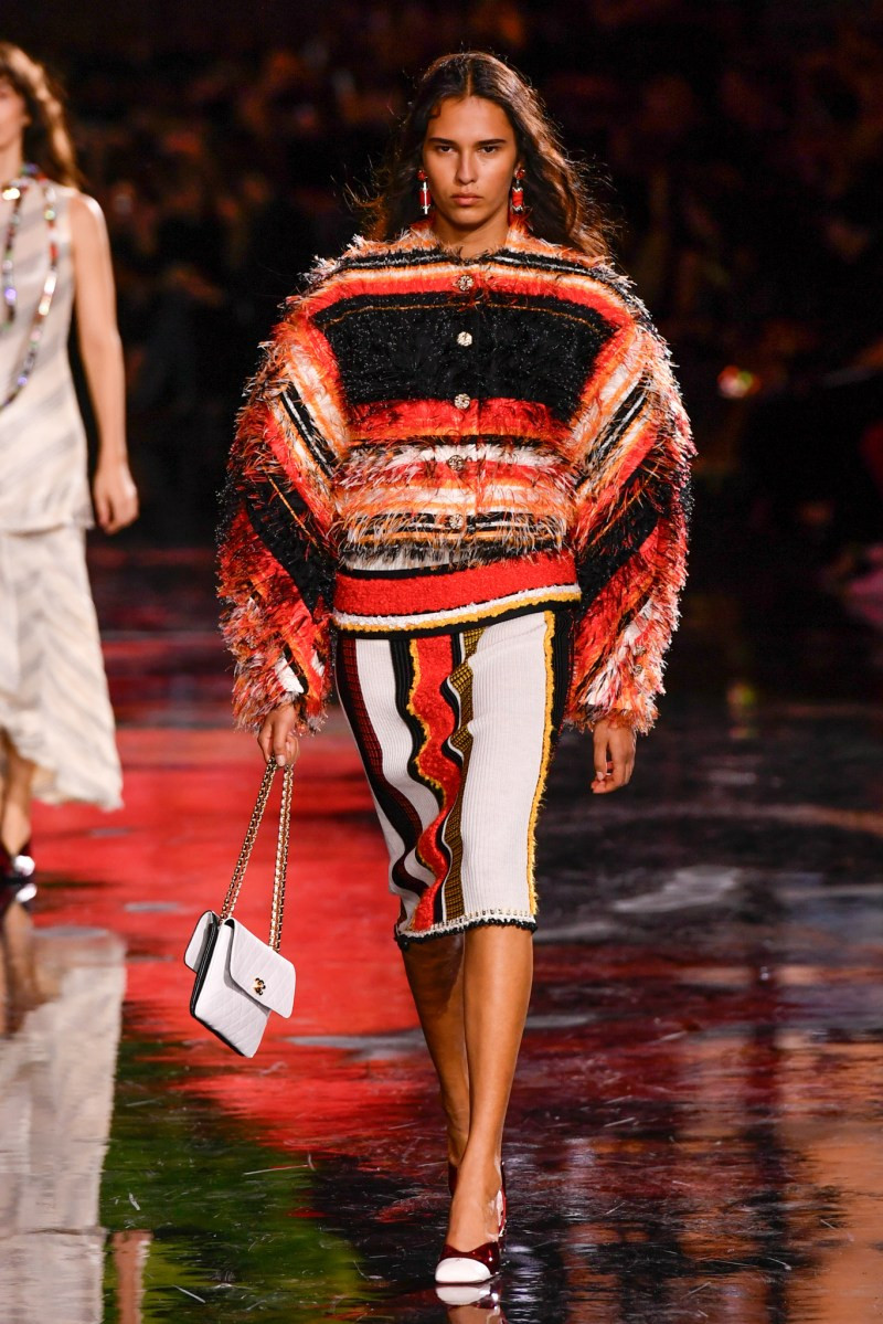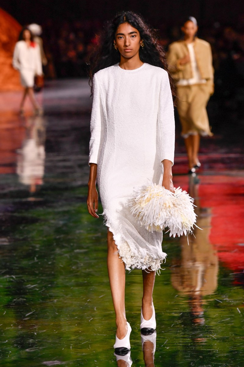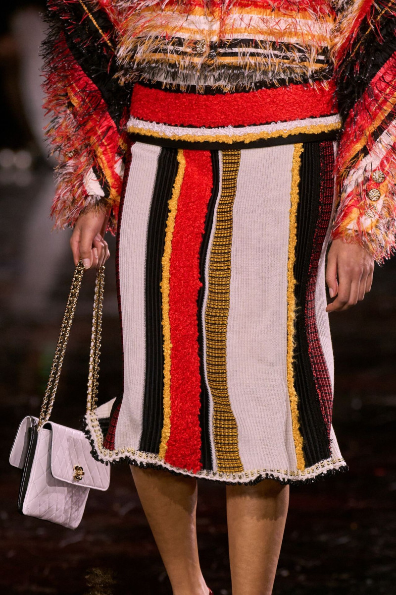 Помимо «очень Chanel» несколько образов на подиуме были «очень Блази». Дизайнеру позволили эту креативную вольность, как когда-то позволяли Карлу Лагерфельду. Мы увидели почерк дизайнера в образах с юбками-фламенко, головными уборами, похожими на «соломенные» парики, цветочных мотивах, выполненных из перьев.