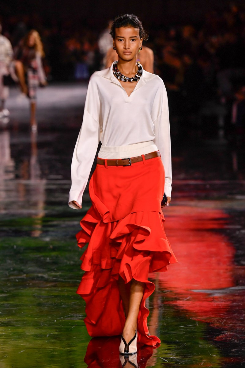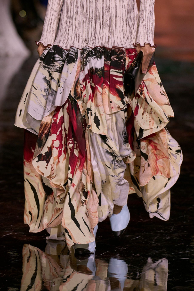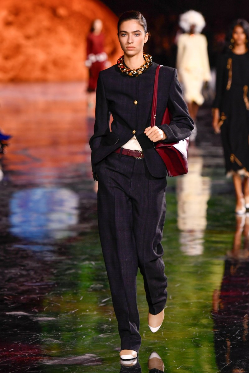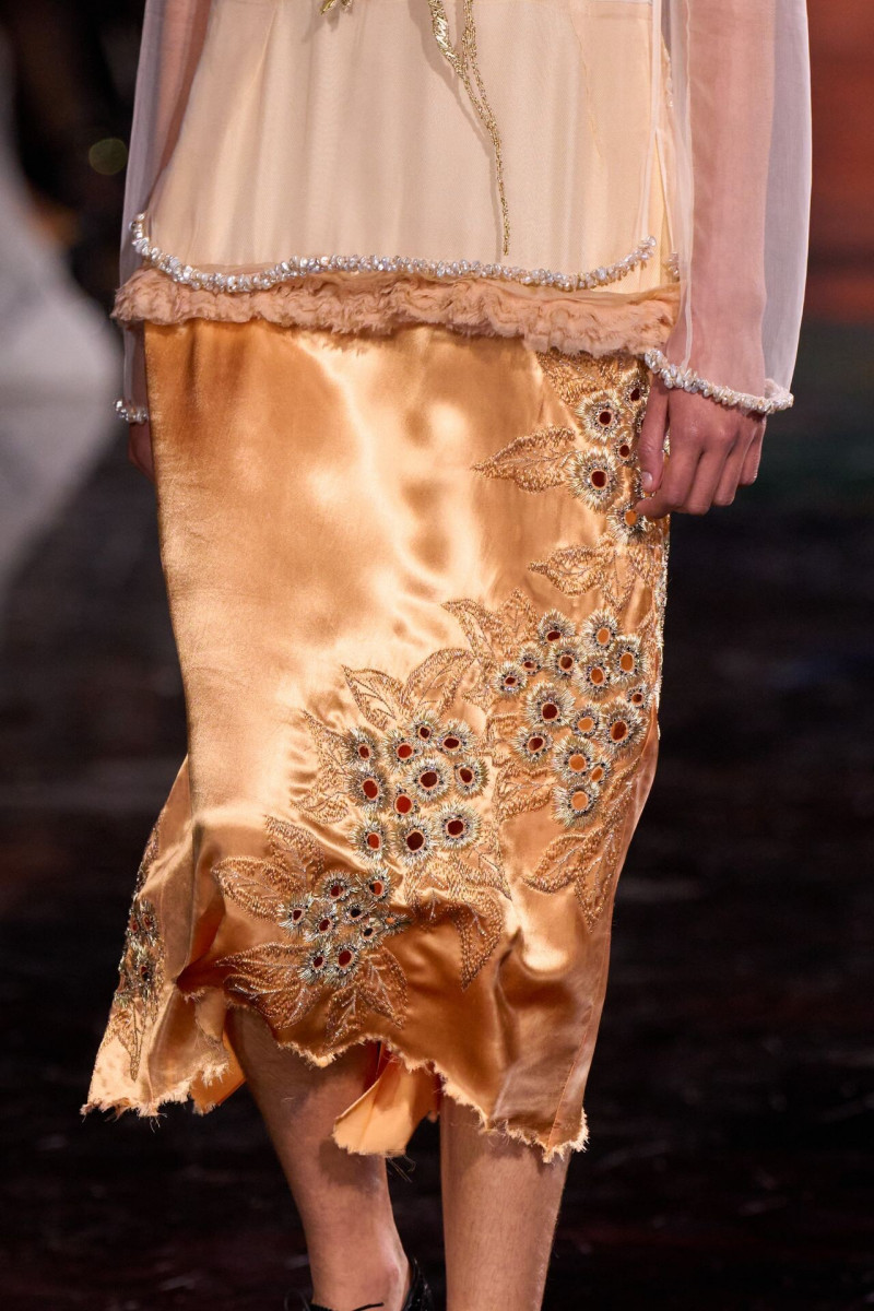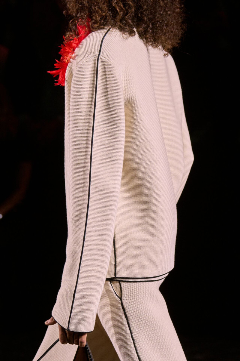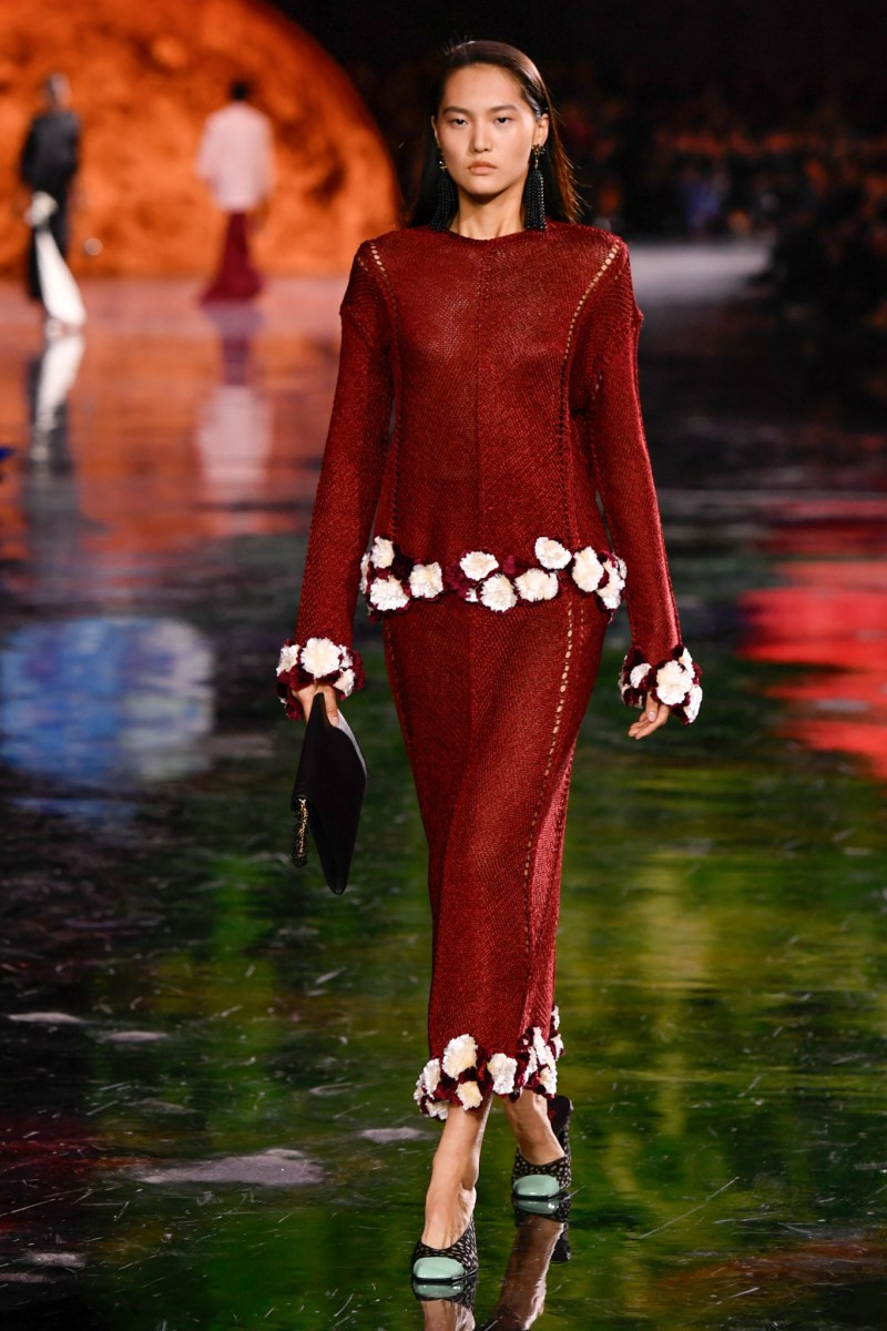 Помимо «очень Chanel» несколько образов на подиуме были «очень Блази». Дизайнеру позволили эту креативную вольность, как когда-то позволяли Карлу Лагерфельду. Мы увидели почерк дизайнера в образах с юбками-фламенко, головными уборами, похожими на «соломенные» парики, цветочных мотивах, выполненных из перьев.