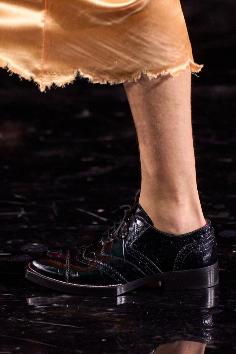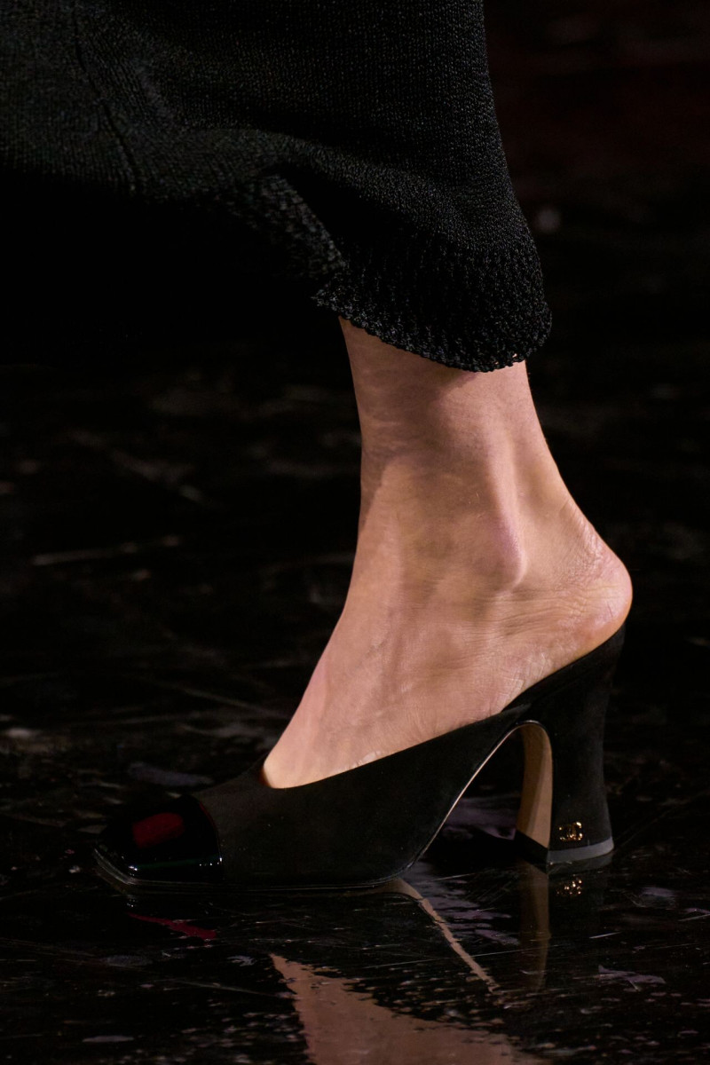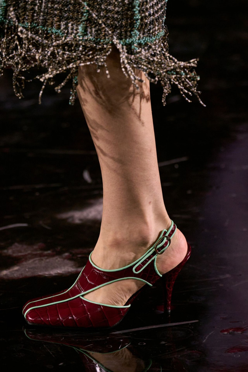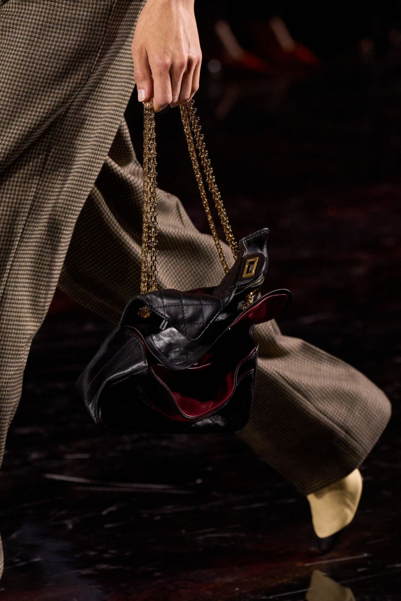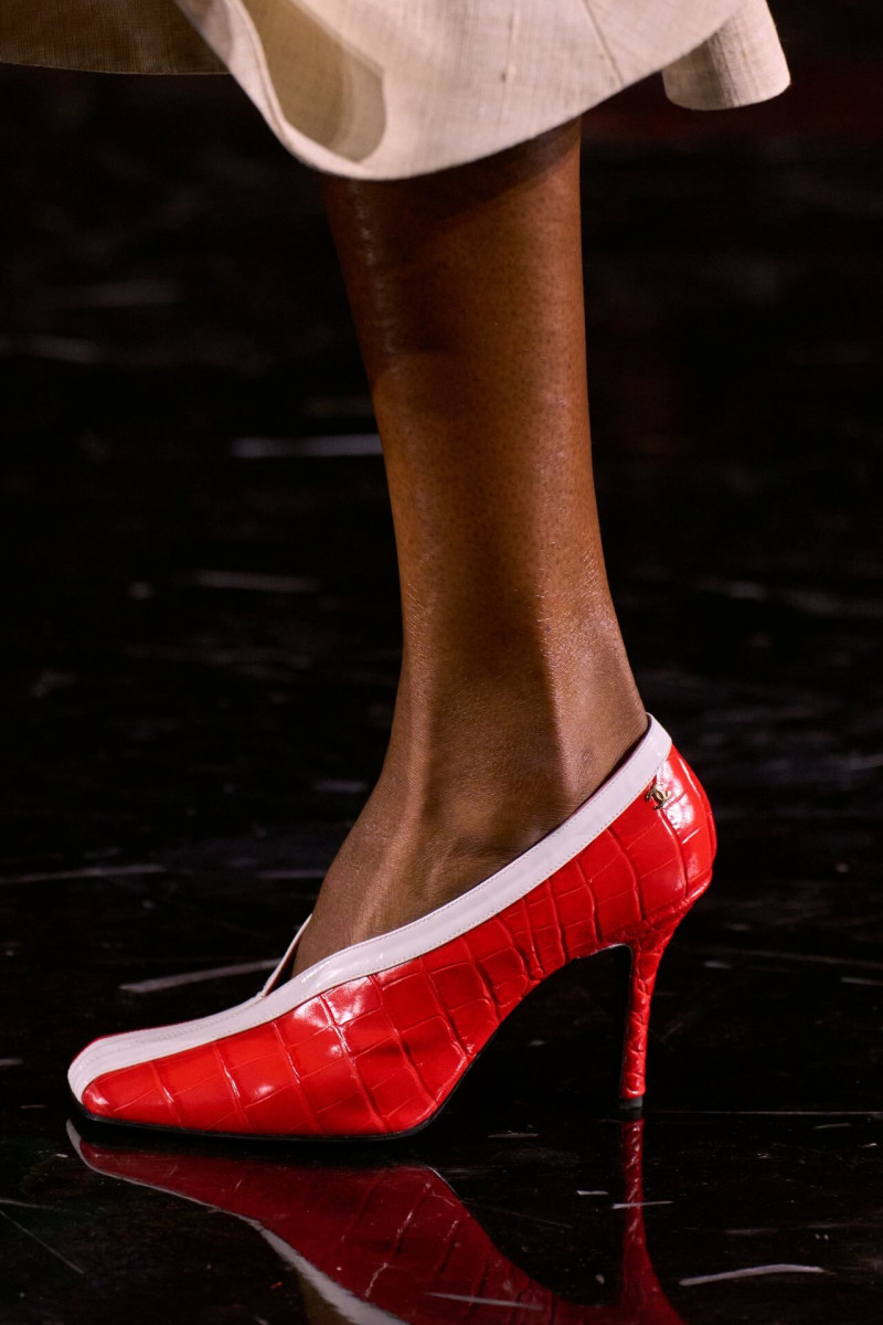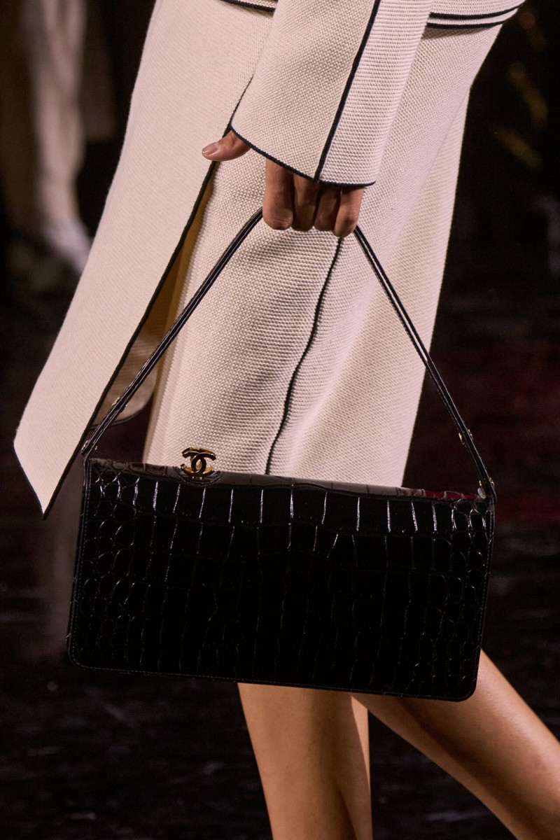 Много шума, безусловно, наделали обуви и аксессуары. Новая сумка 2.55 стала самой смелой задумкой Матье. Никакой сдержанности и чопорности. Она жетская, помятая, выполнена из золота, обшита изнутри фирменным красным бархатом. Нам же особенно понравились кожаные модели, «вдохновенные» фирменными шопинг-пакетами Chanel: белыми, с черными ручками и окантовкой. К слову! Специально к дебюту Блази в Chanel изменили дизайн пакетов: сам логотип стал миниаьюрным, а сама надпись бренда исчезла. Туфли с фирменными «мысочками» в новых расцветках — эхо ар-деко, любимого архитектурного жанра Шанель.