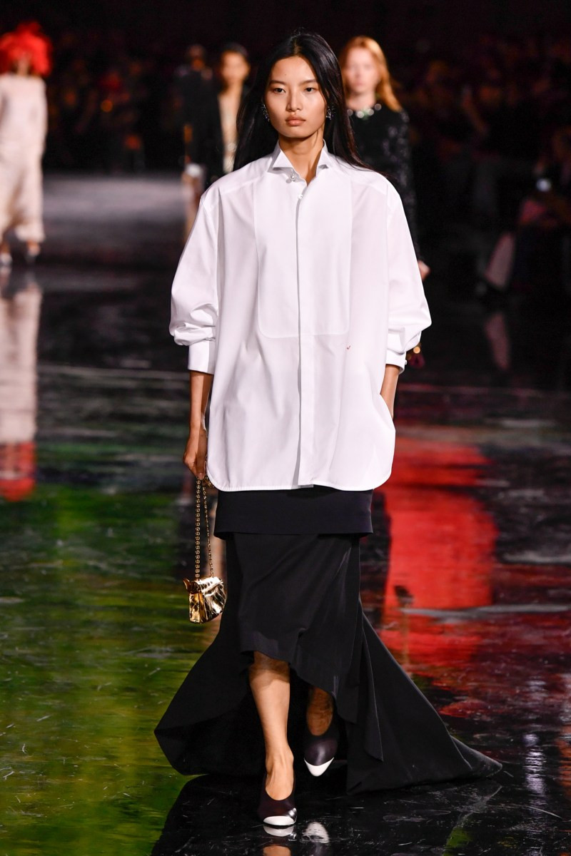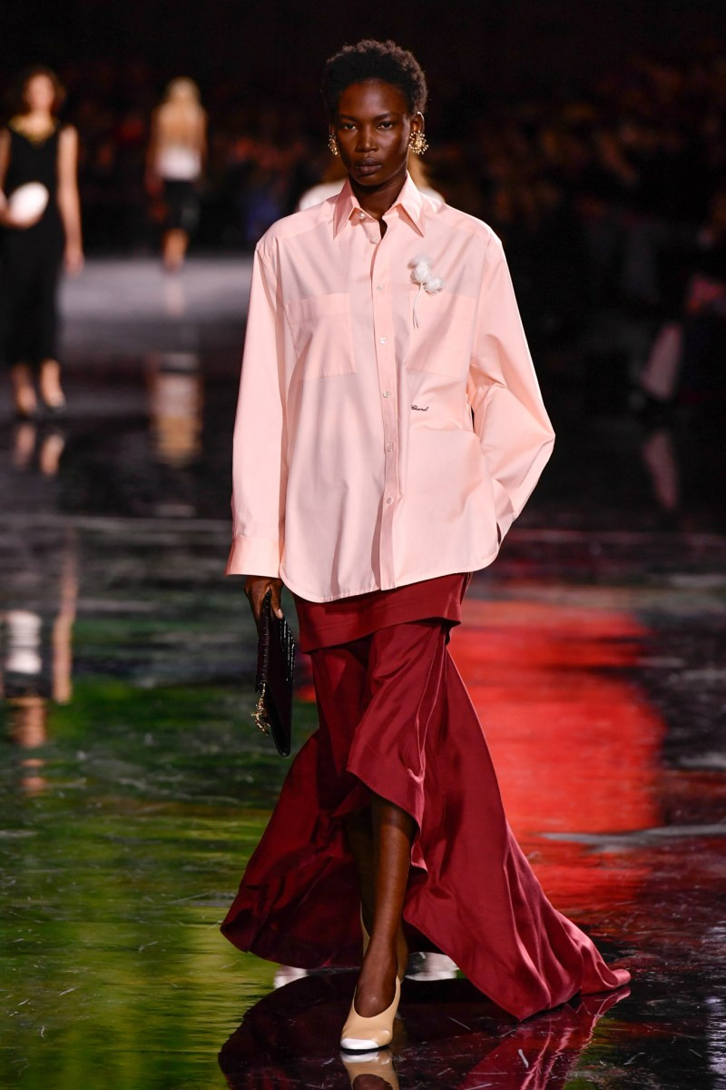 Первая мысль при просмотре коллекции Chanel: если бы Великая Мадмуазель, Габриэль Шанель, творила бы в наше время — она бы сделала тоже самое! Блази поразительным образом удалось интерпретировать мечты, идеи и «изобретения» Шанель на современный манер. Диалог с гостями начался с парадокса — мужской рубашки и брюк. В миру это классика мужского гардероба, но для Шанель/Chanel — это воспоминание об Артуре «Бой» Капеле. Английском игроке в поло, бизнесменом, любовником и покровителем «Коко». Именно у него Габриэль, а теперь и Блази, позаимствовали мужскую рубашку, ставшую символом ее бунта и независимости. Тогда рубашка шилась в знаменитой французской мануфактуре Charvet — сегодня Chanel сотрудничает с тем же домом. К этой рубашке креативный директор добавляет жакеты мужского кроя, но сильно укороченные: необработанные края, адаптированные под женскую фигуру.
