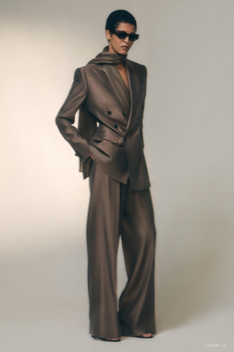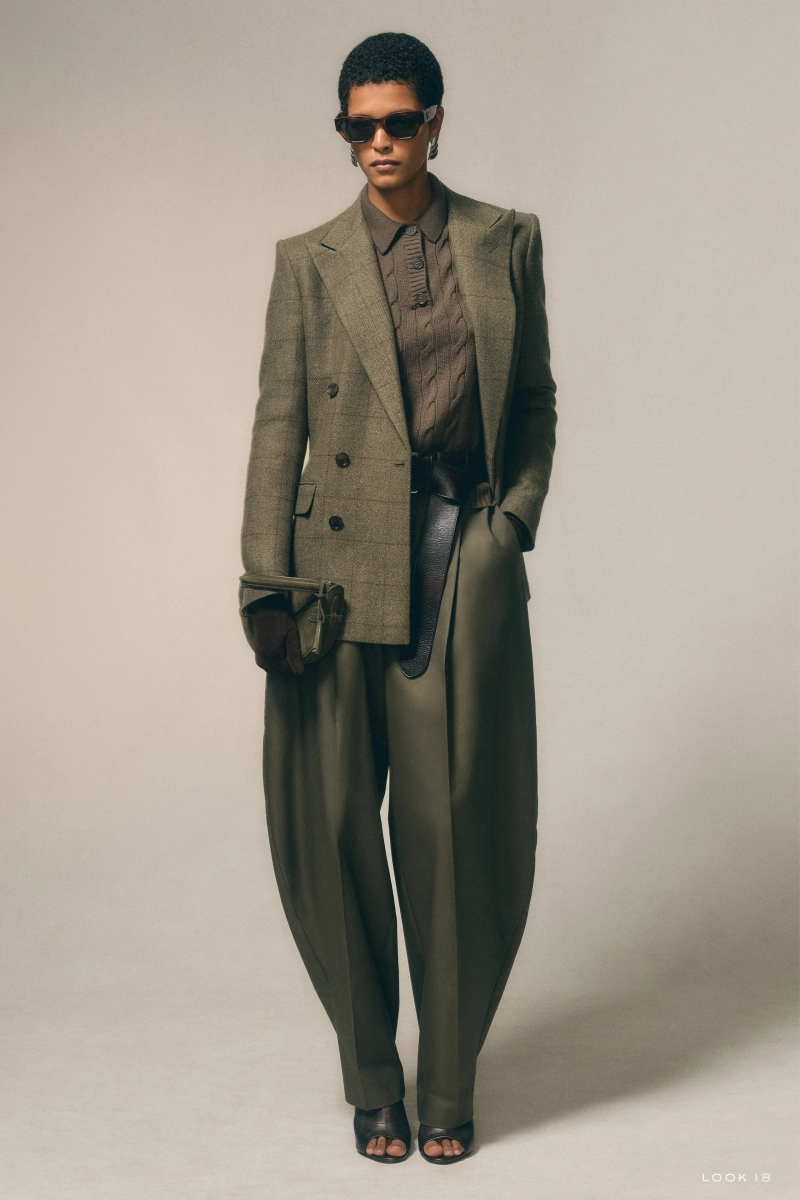 Палитра остается естественной, не приобретая тяжести. Шелка подвергаются песчаной мойке до тех пор, пока не станут мягкими, подобными замше, подчеркивая утонченную элегантность коллекции. Эти тактильные обработки придают теплоту и доступность, делая вещи столь же носибельными, сколь и роскошными. Несмотря на внимание к ремеслу, одежда никогда не становится вычурной; она сохраняет практичность, которая давно определяет бренд. Пошив на заказ, ставший краеугольным камнем наследия Ralph Lauren в преддверии 60-летия дома, придает коллекции уверенность и авторитет.