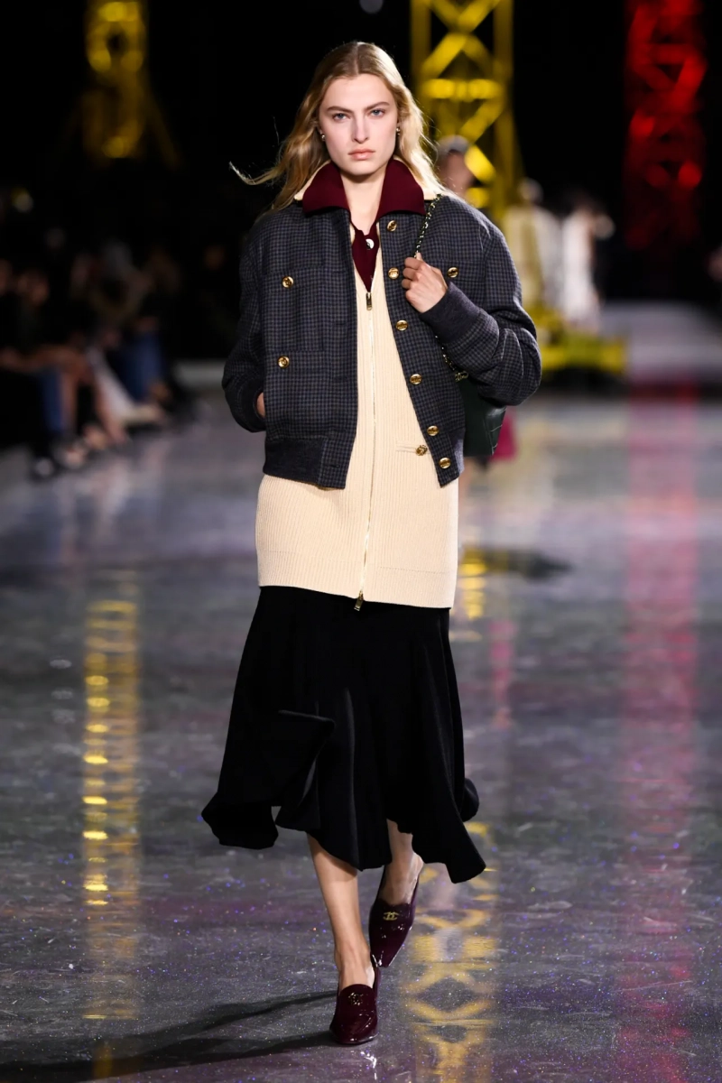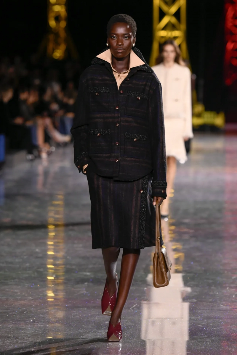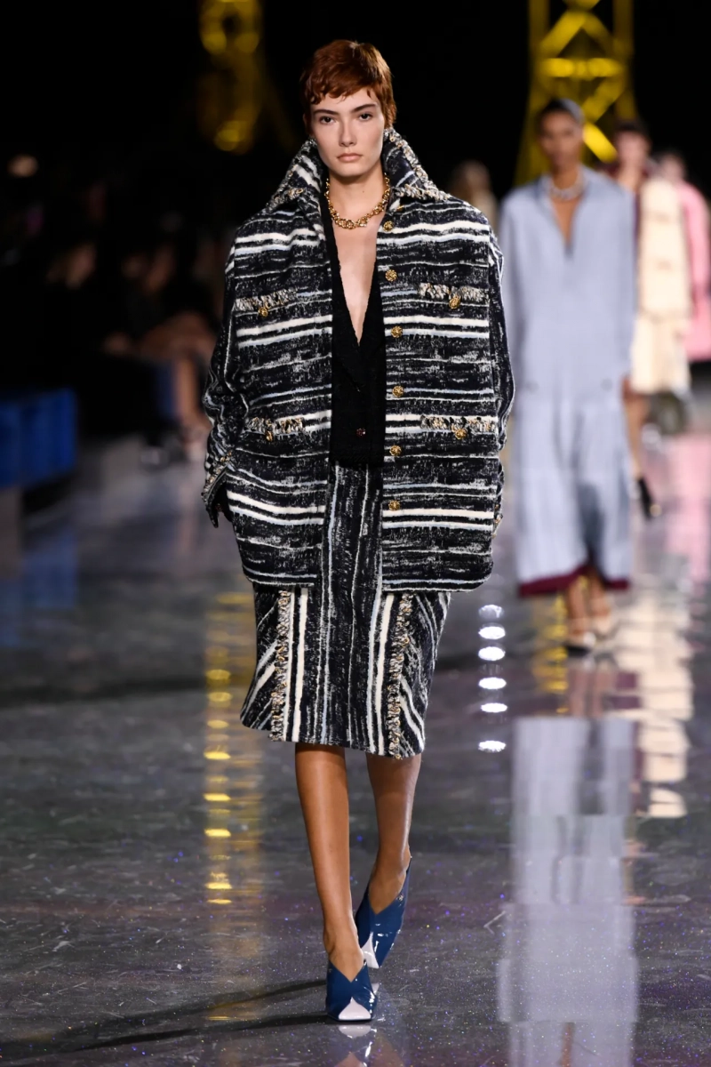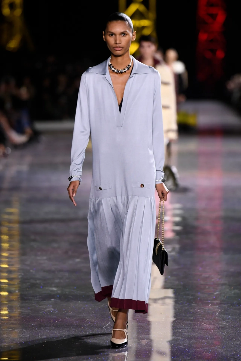И действительно, Блази быстро перестраивает дом. Он обращается к архивам Coco Chanel не из музейного уважения, а к ее умению брать одежду рабочего класса и превращать ее в роскошь: цитирует платья 1920-х с заниженной талией и отправляет на подиум блузоны, которые неожиданно современно выглядят для Chanel.