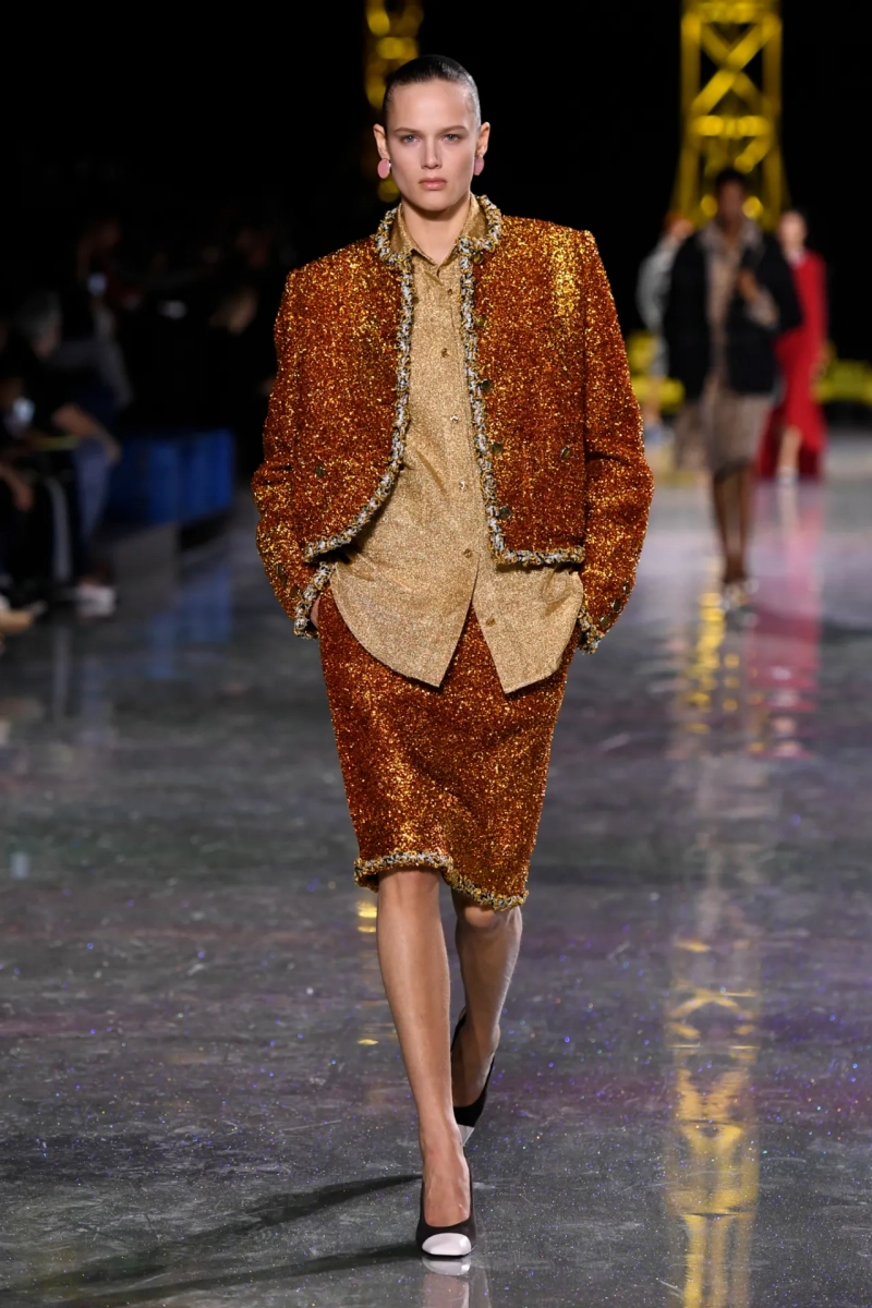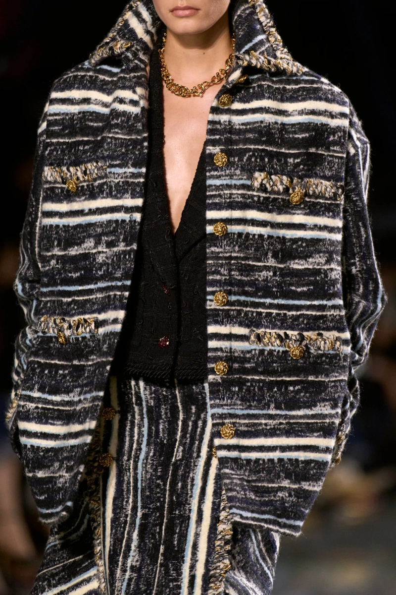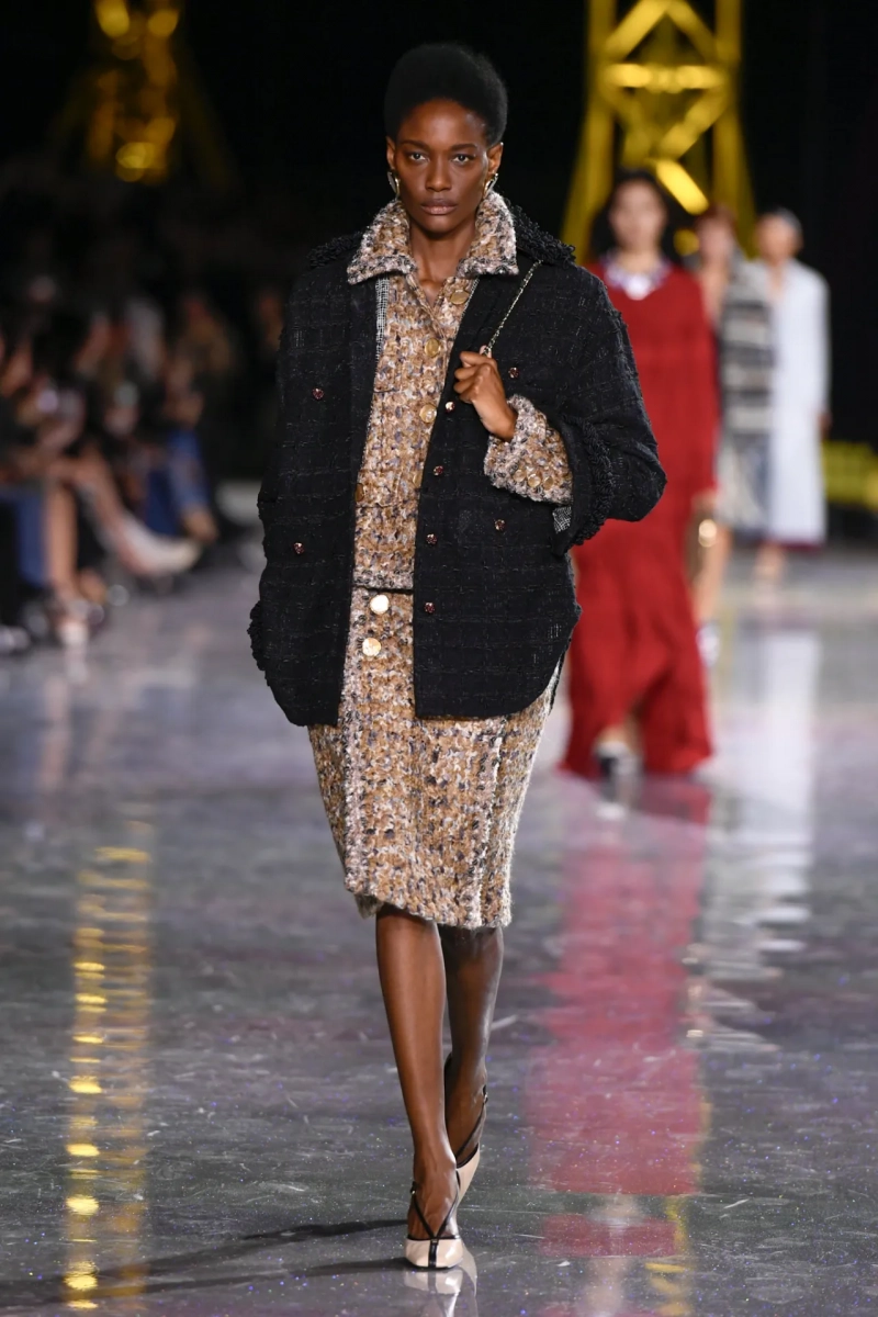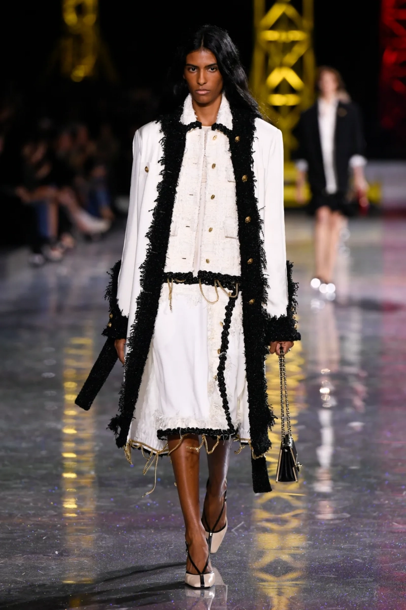 И действительно, Блази быстро перестраивает дом. Он обращается к архивам Coco Chanel не из музейного уважения, а к ее умению брать одежду рабочего класса и превращать ее в роскошь: цитирует платья 1920-х с заниженной талией и отправляет на подиум блузоны, которые неожиданно современно выглядят для Chanel.